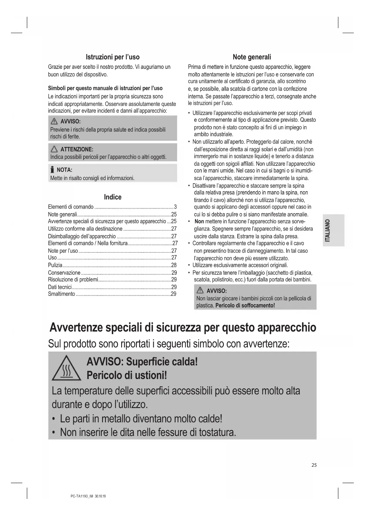- Non inserire le dita nelle fessure di tostatura.PC-TA1193_IM 30.10.19