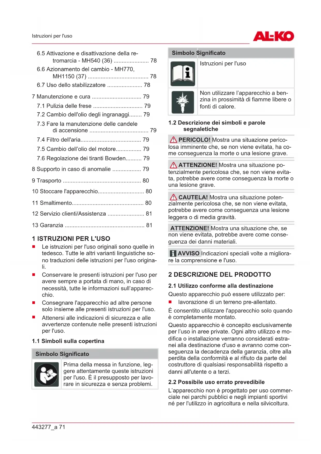MH 770 - Fresatrice AL-KO - Manuale utente e istruzioni gratuiti