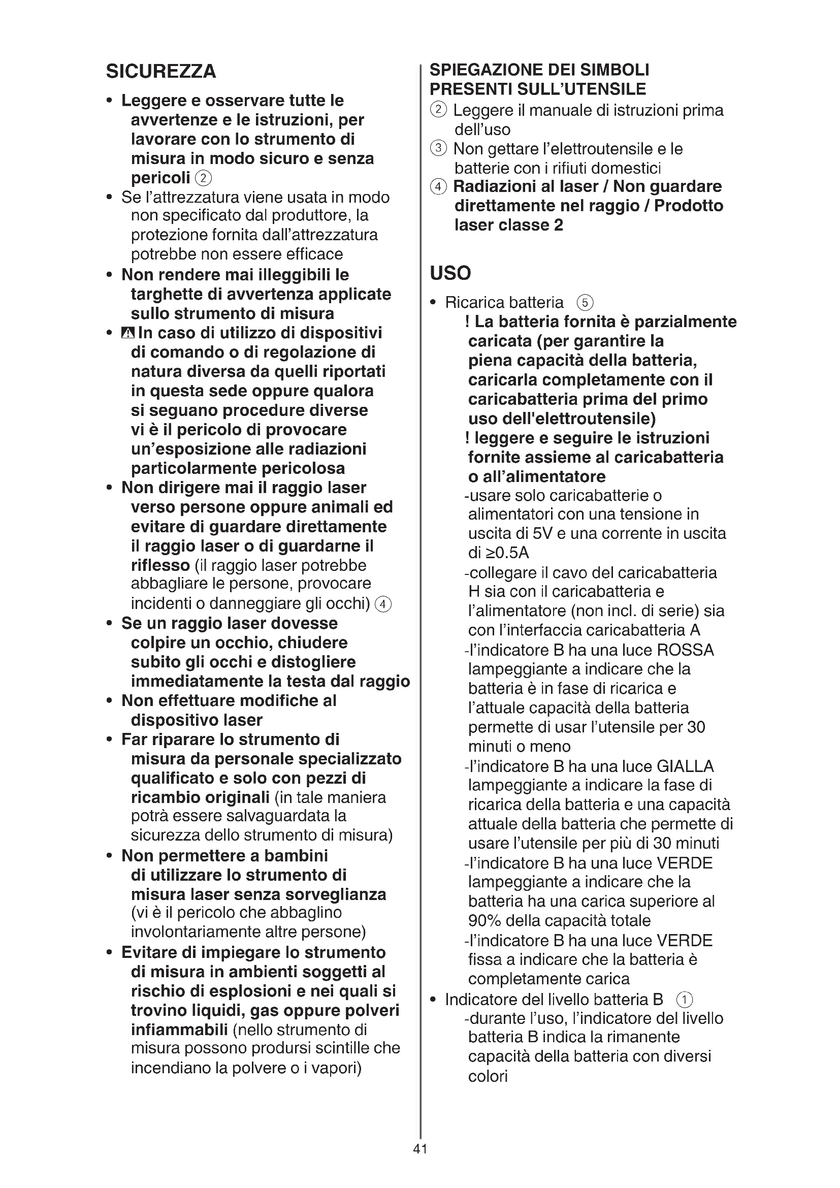 - Conservare con cura le presenti istruzioni e consegnarle insieme allo strumento di misura in caso di cessione a terzi41