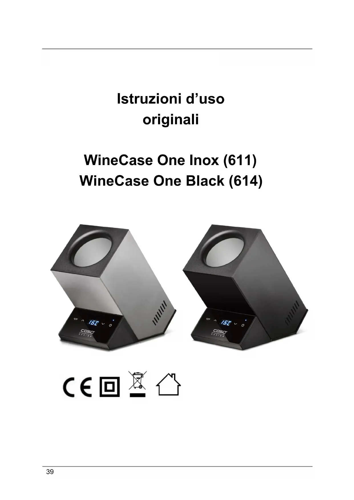 Queste istruzioni d’uso sono una componente del WineCase One (di seguito chiamato l’apparecchio) e Le fornirà importanti indicazioni per la messa in funzione, la sicurezza, un utilizzo conforme alle disposizioni e per la cura dell’apparecchio. Le istruzioni d'uso devono trovarsi sempre nelle vicinanze dell’apparecchio. Dovranno essere lette ed utilizzate da qualsiasi persona, incaricata con la: