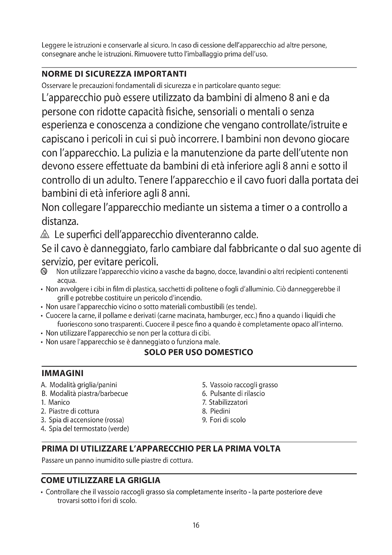 IMMAGINI A. Modalità griglia/panini B. Modalità piastra/barbecue