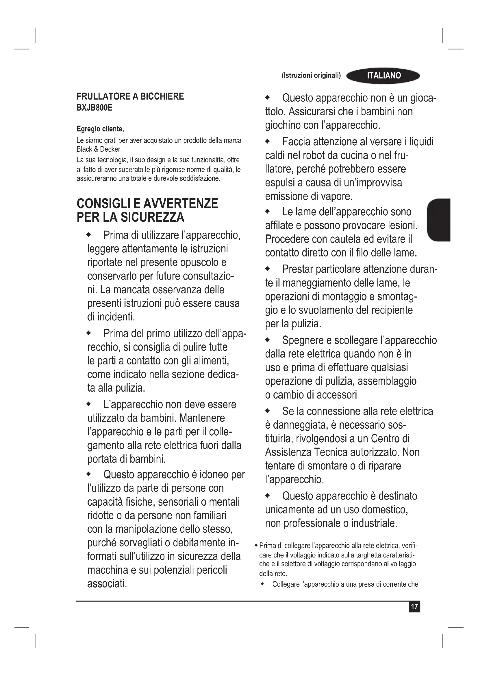 MANUALE UTENTE BXJB800E BLACK & DECKER