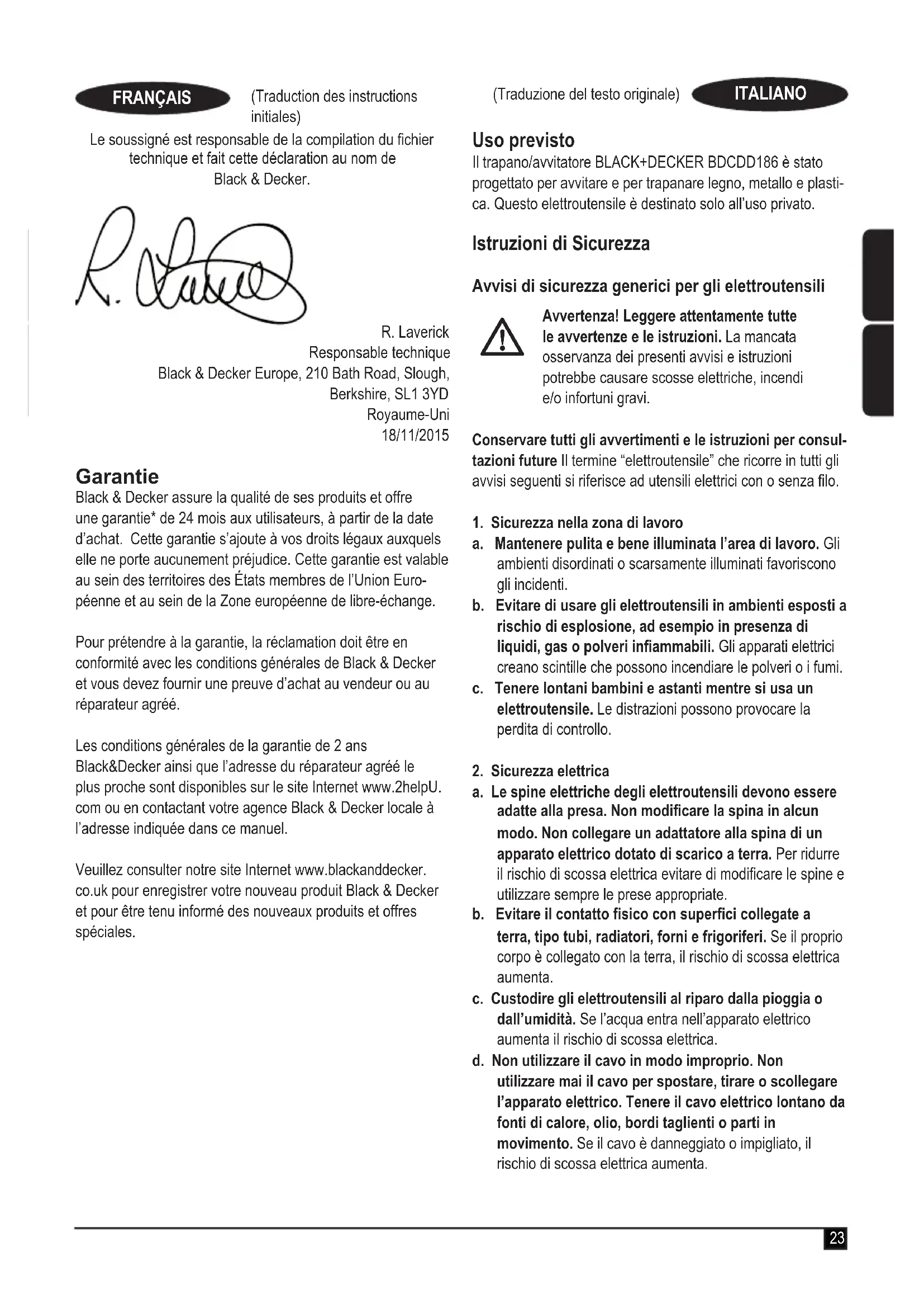 MANUALE UTENTE BDCDD186K BLACK & DECKER