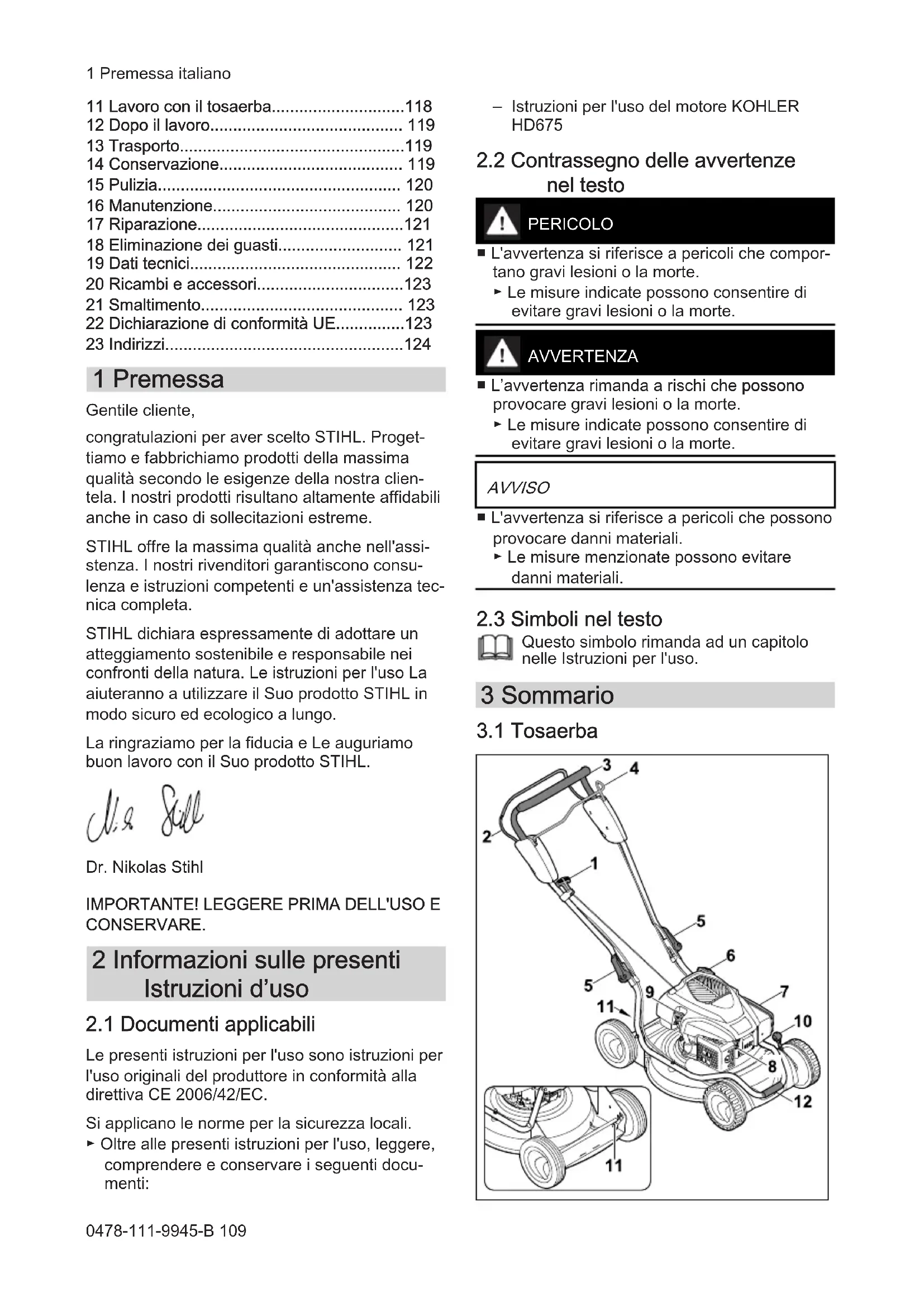 STIHL dichiara espresamente di adottare un atteggiamo sostenibile e responsabile nei confronti della natura. Le istruzioni per l'uso La aiuteranno a utilizzato il Suo prodotto STIHl in modo sicuro ed ecologico a lungo.