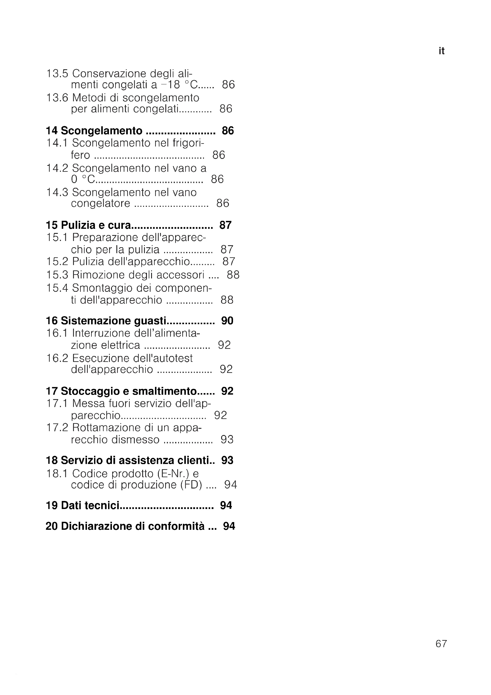 congelatore ........................... 86 15 Pulizia e cura...........................87