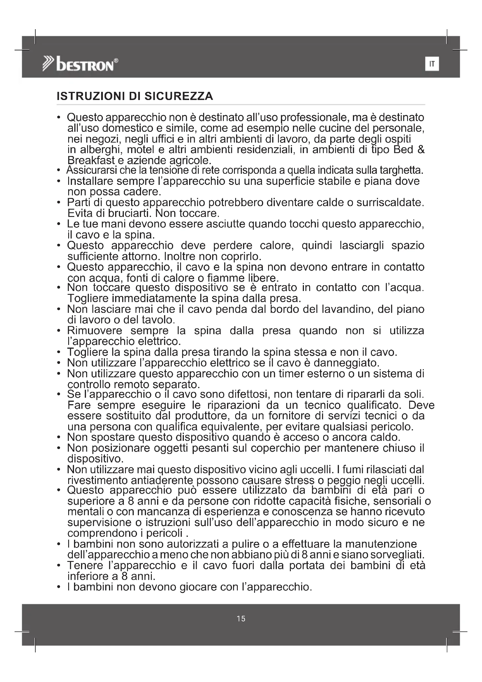 - I bambini non sono autorizzati a pulire o a eettuare la manutenzione dell’apparecchio a meno che non abbiano più di 8 anni e siano sorvegliati.