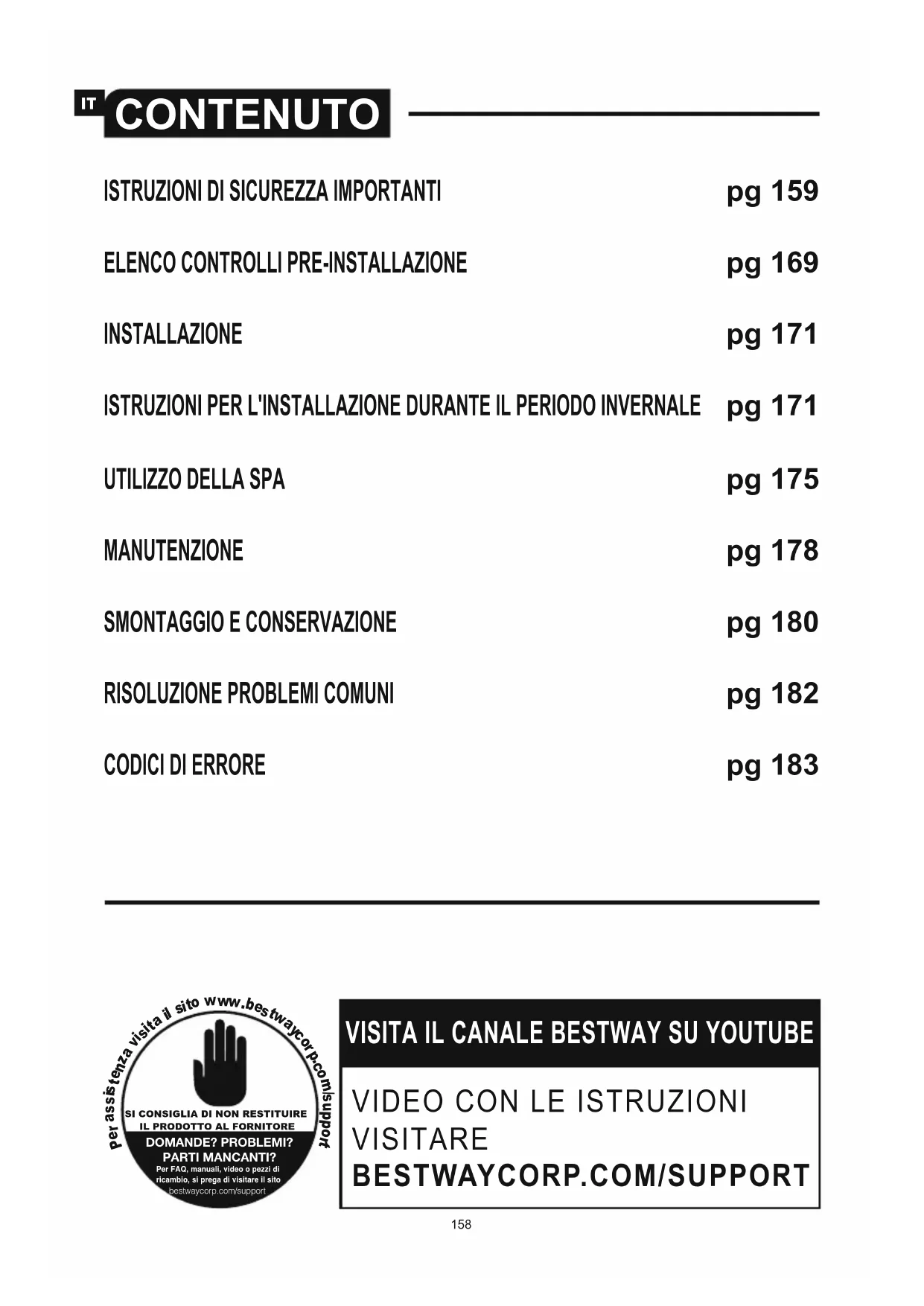 Per assistenza, visitare la sezione di supporto sul nostro sito web www.bestwaycorp.com
