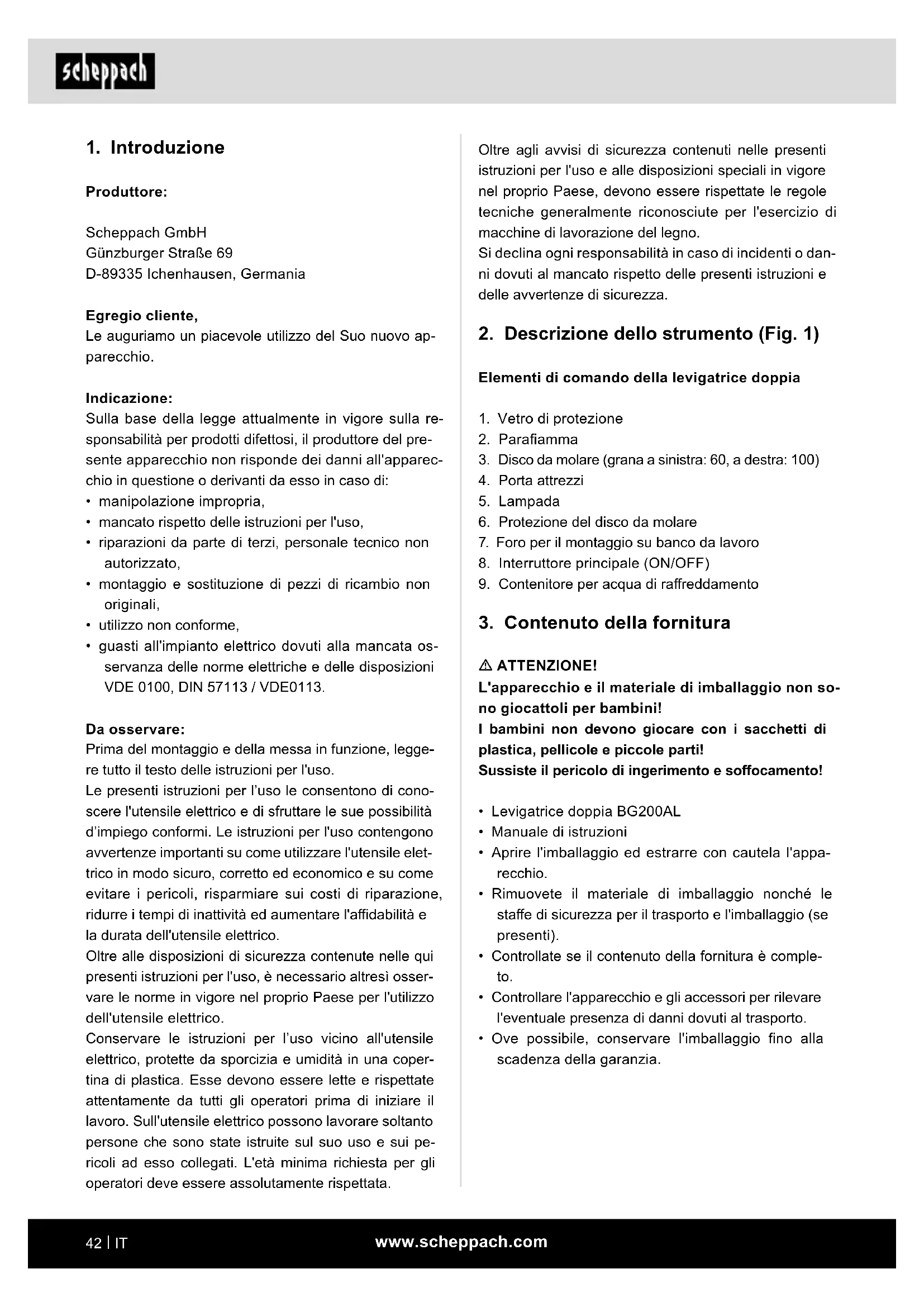 Trova gratuitamente il manuale del dispositivo BG200AL SCHEPPACH in formato PDF.