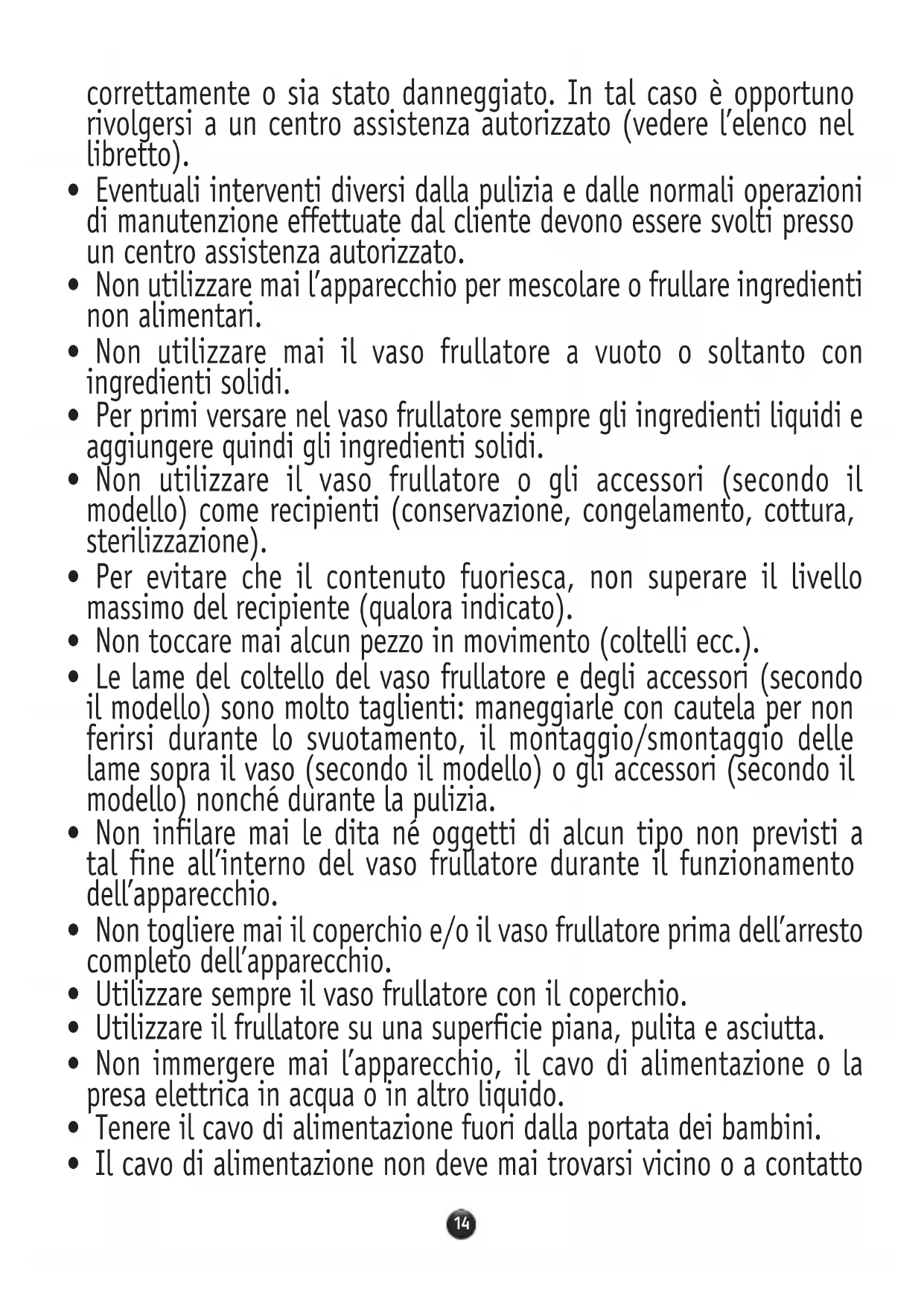 - Non togliere mai il coperchio e/o il vaso frullatore prima dell’arresto completo dell’apparecchio.