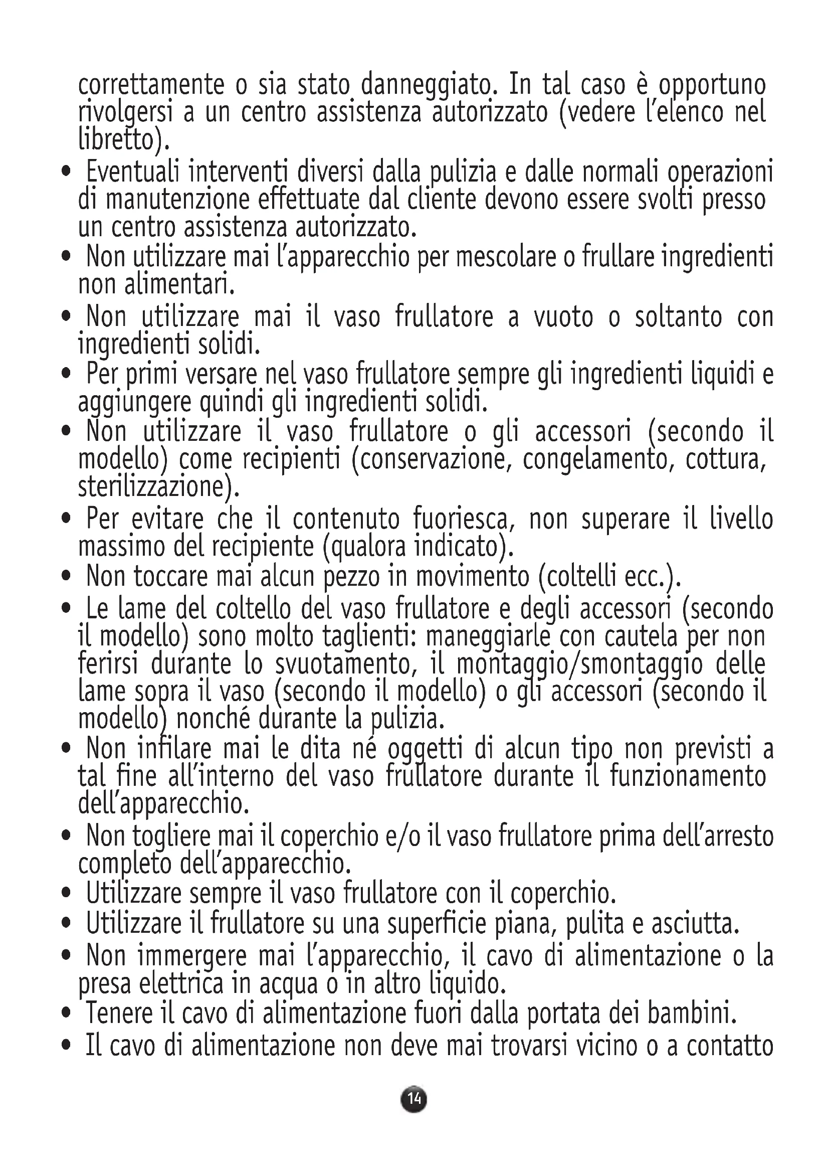 - Non togliere mai il coperchio e/o il vaso frullatore prima dell’arresto completo dell’apparecchio.