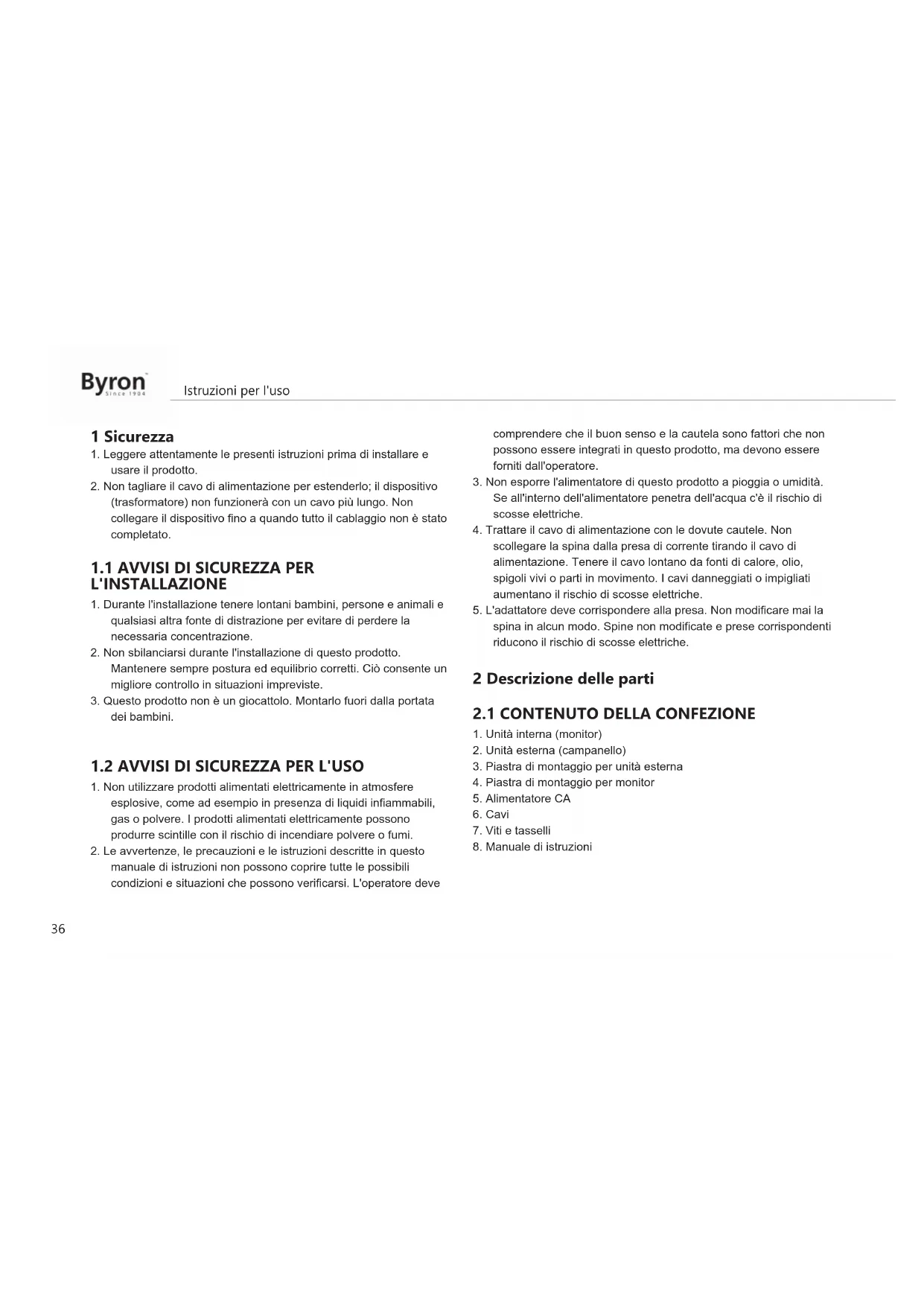 Trova gratuitamente il manuale del dispositivo DIC24712 BYRON in formato PDF.