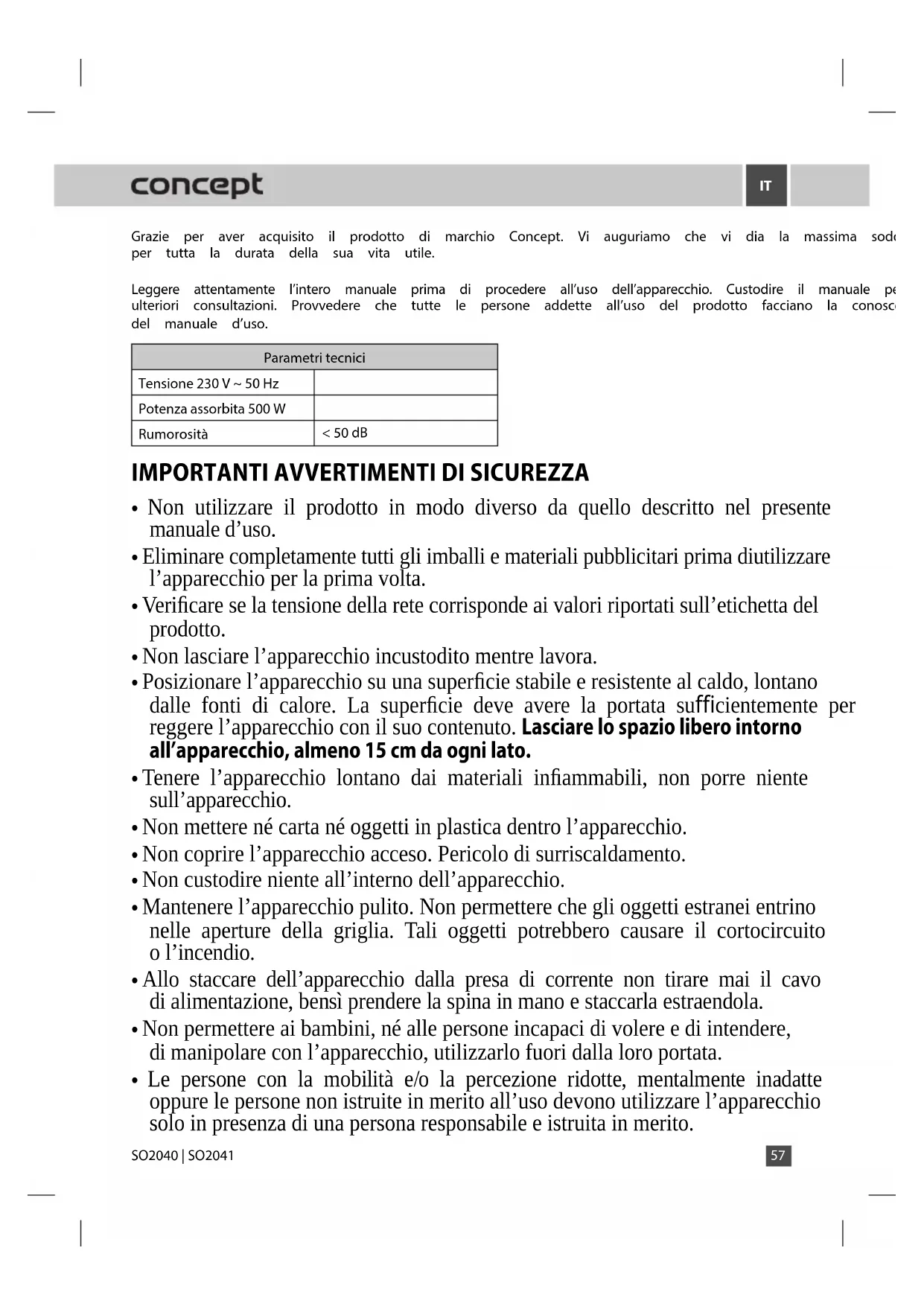 MANUALE UTENTE SO2041 Concept