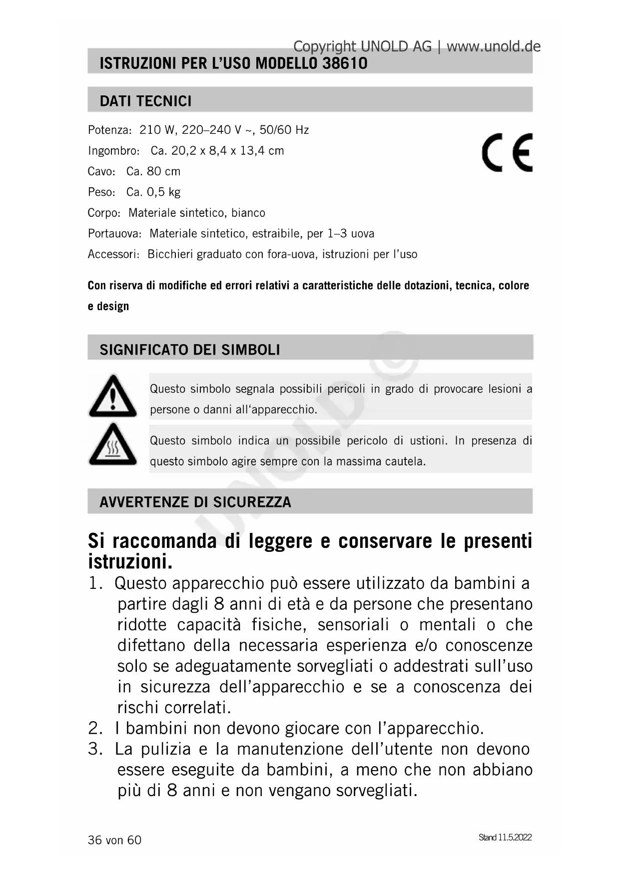 Mini 38610 - Cuociuova UNOLD - Manuale utente e istruzioni gratuiti