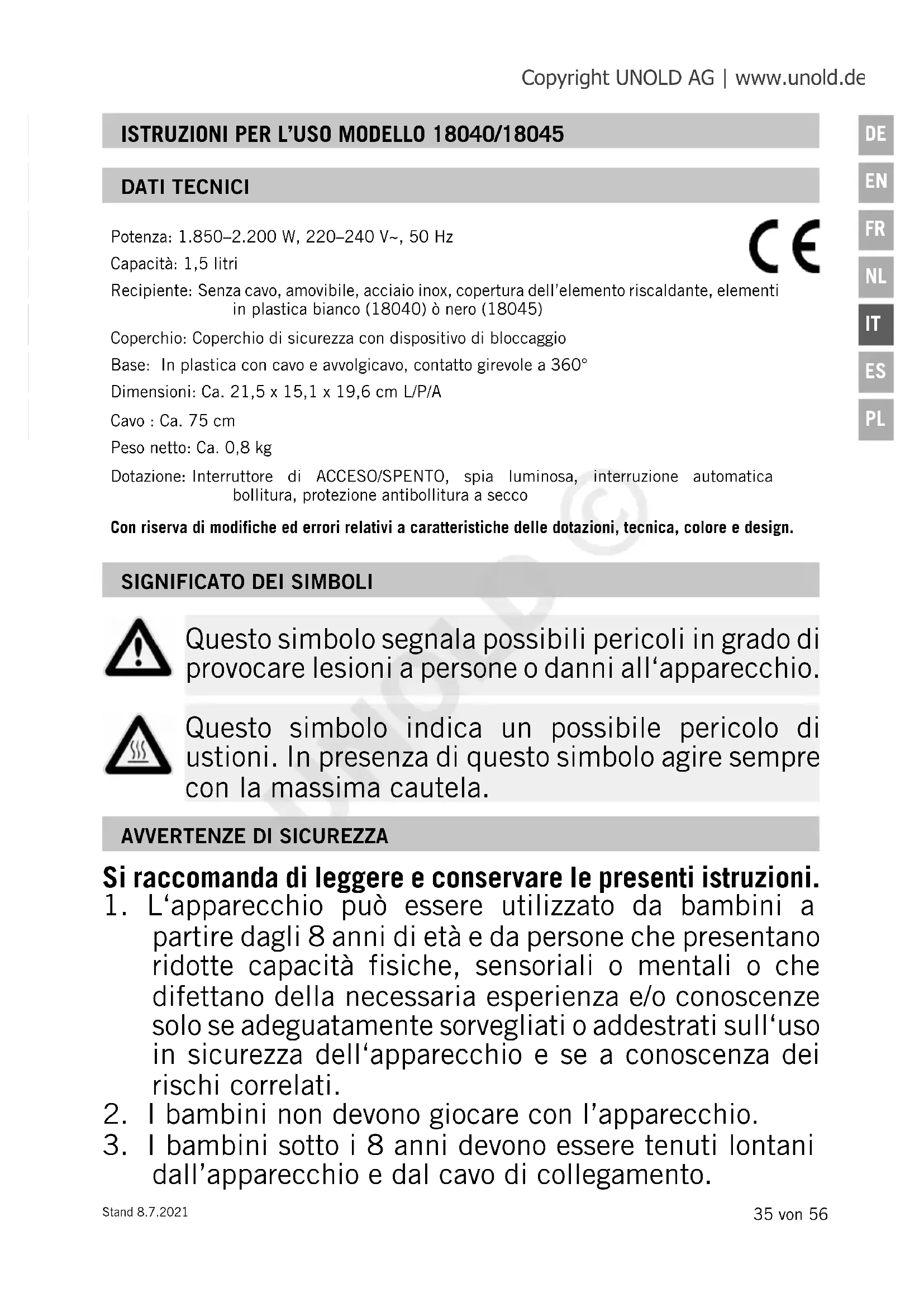 estrarre la spina dalla presa di corrente. Non lasciare Copyright UNOLD AG | www.unold.de UNOLD ©38 von 56 Stand 8.7.2021