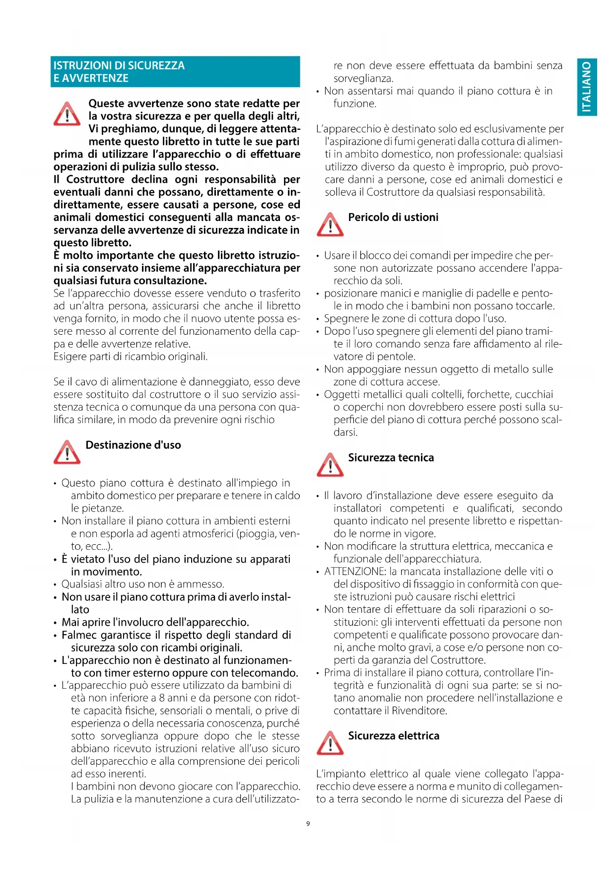 - Falmec garantisce il rispetto degli standard di sicurezza solo con ricambi originali.