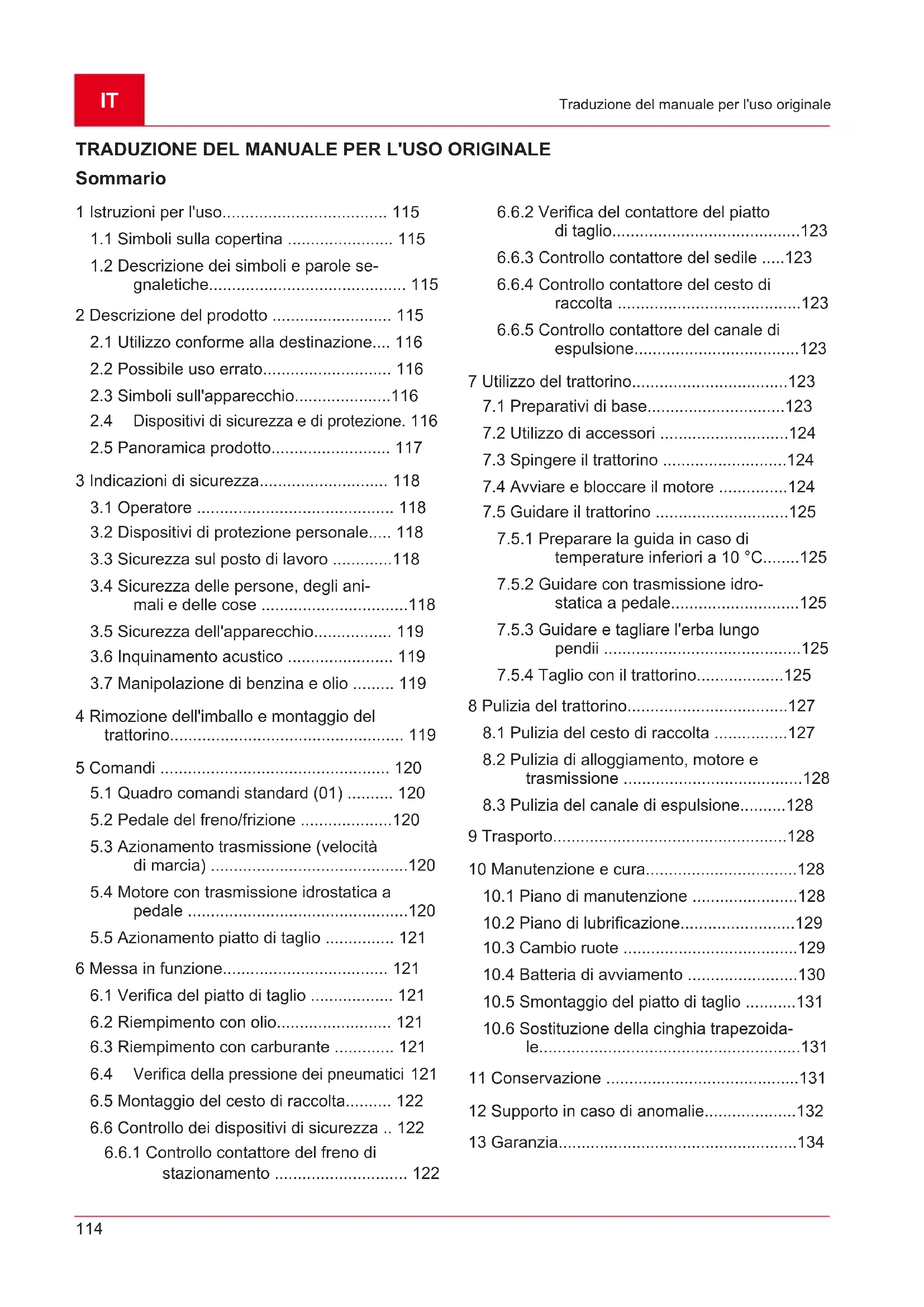 8 Pulizia del trattorino...................................127
