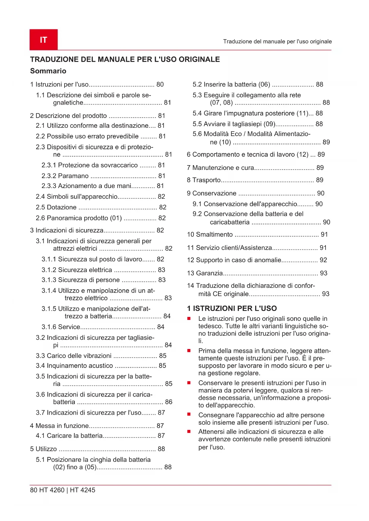 sotto).IT 90 HT 4260 | HT 4245 Conservazione AVVISO L'energia nominale della batteria è supe- riore a 100 Wh! Attenersi quindi alle di- rettive di trasporto che seguono! La batteria agli ioni di litio in dotazione è soggetta alla legge sulle merci pericolose ma può essere trasportate in condizioni semplificate: