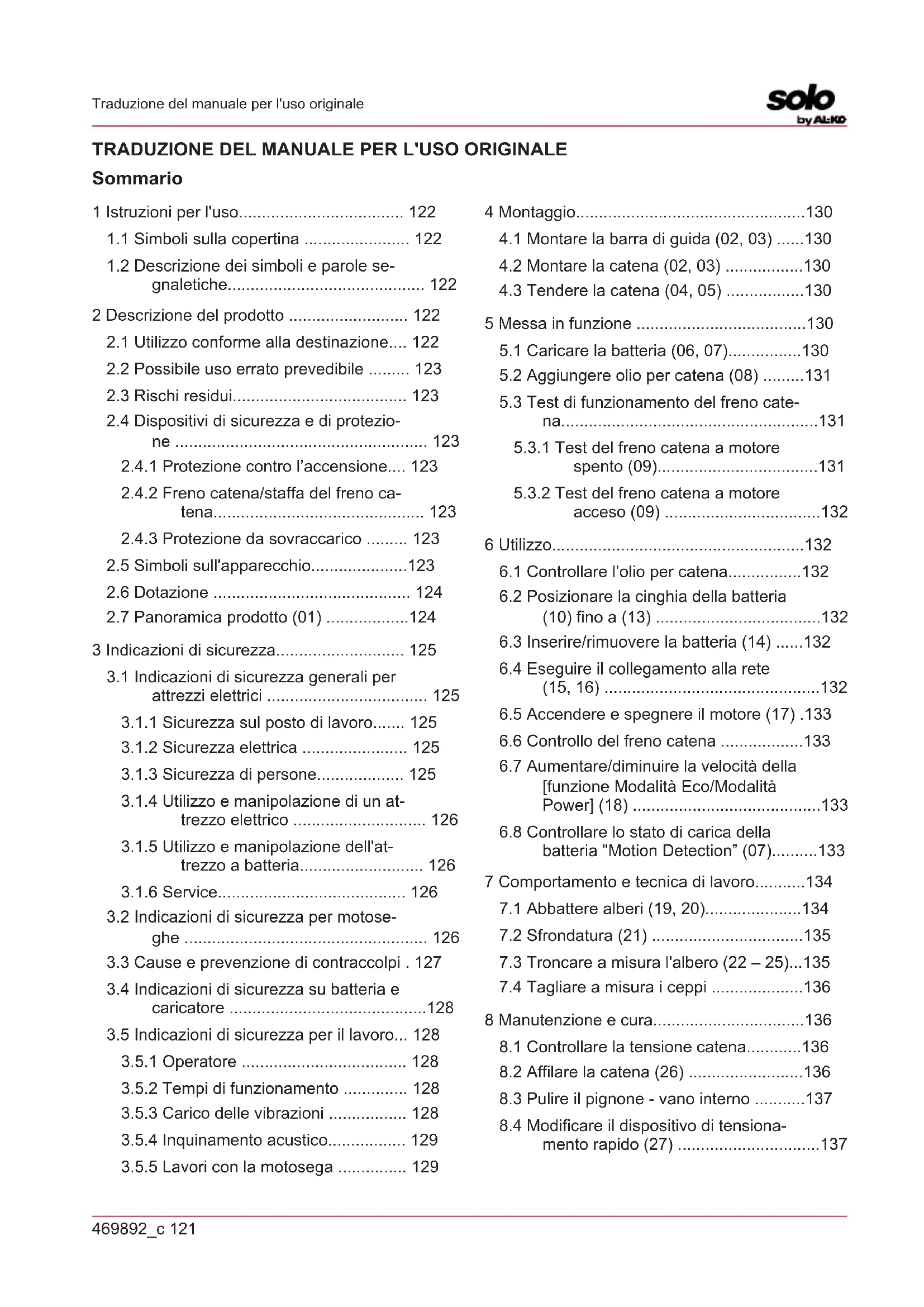 6.6 Controllo del freno catena ..................133