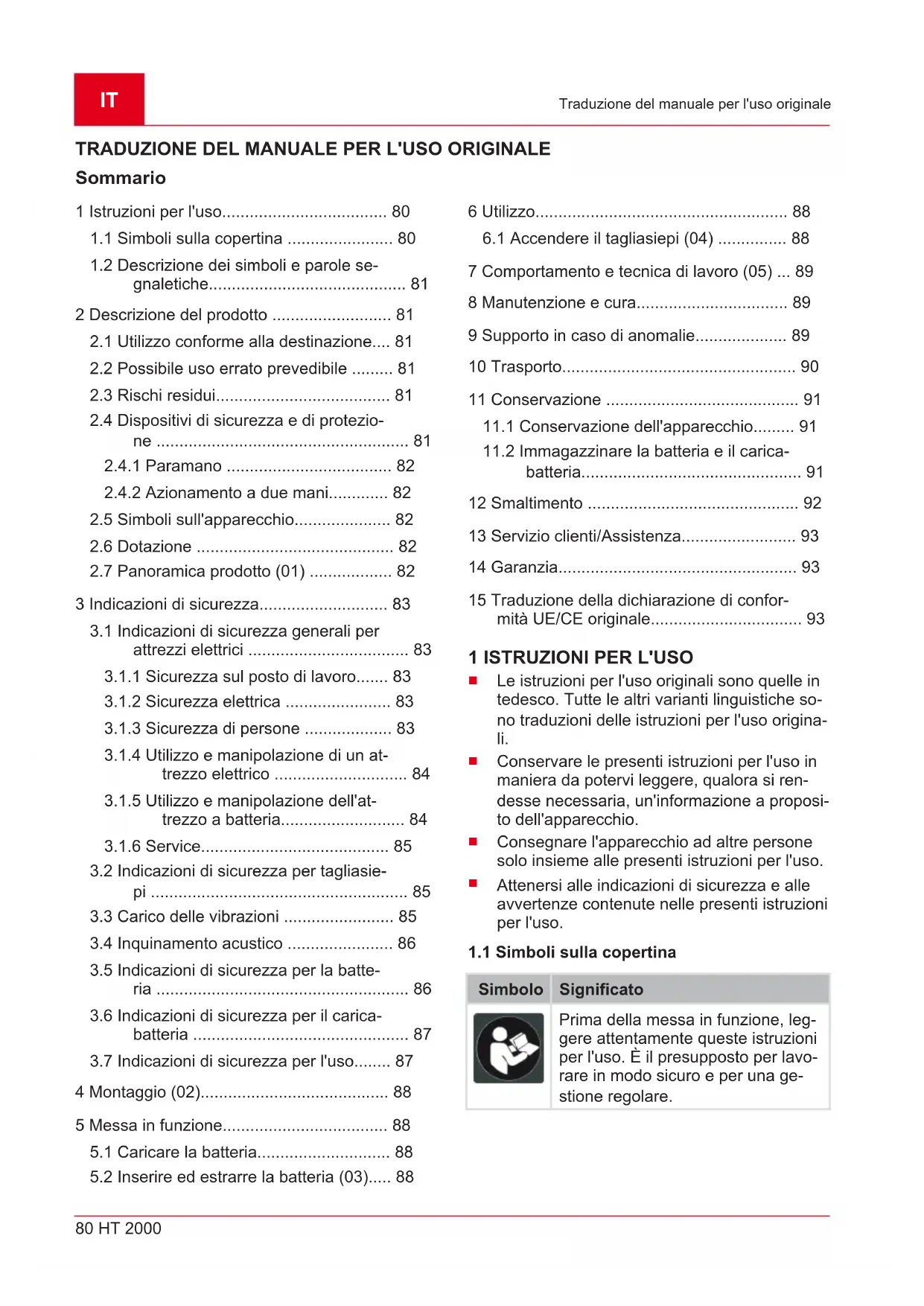 Non disattivare mai i dispositivi di si- curezza e di protezione.IT 82 HT 2000 Descrizione del prodotto