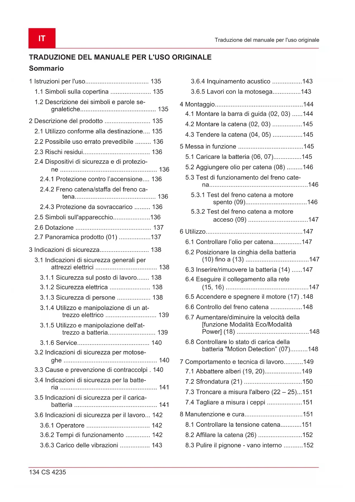 Le presenti istruzioni per l'uso descrivono una motosega portatile alimentata da una batteria ri- caricabile.