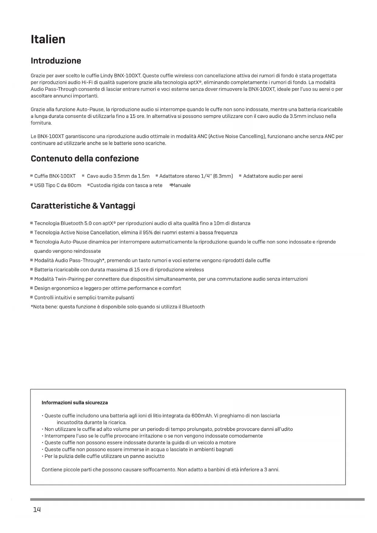 Scarica le istruzioni per il tuo Casco in formato PDF gratuitamente! Trova il tuo manuale BNX100XT - Lindy e riprendi in mano il tuo dispositivo elettronico. In questa pagina sono pubblicati tutti i documenti necessari per l'utilizzo del tuo dispositivo. BNX100XT del marchio Lindy.