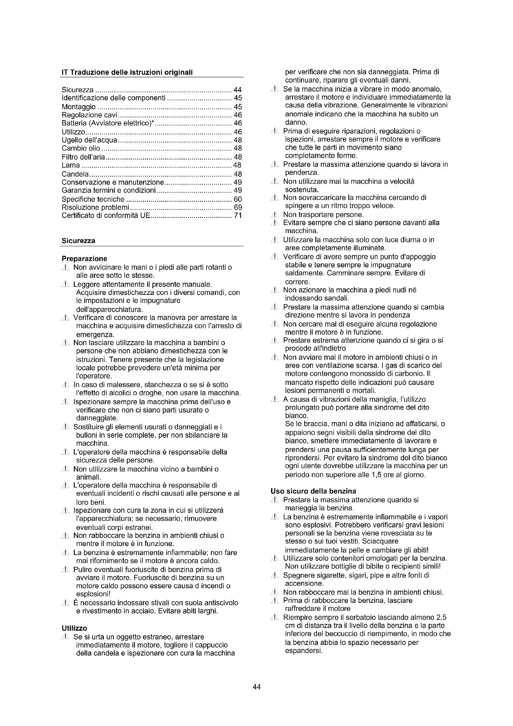 4 Leggere attentamente il presente manuale. Acquisire dimestichezza con i diversi comandi, con le impostazioni e le impugnature dell'apparecchiatura.