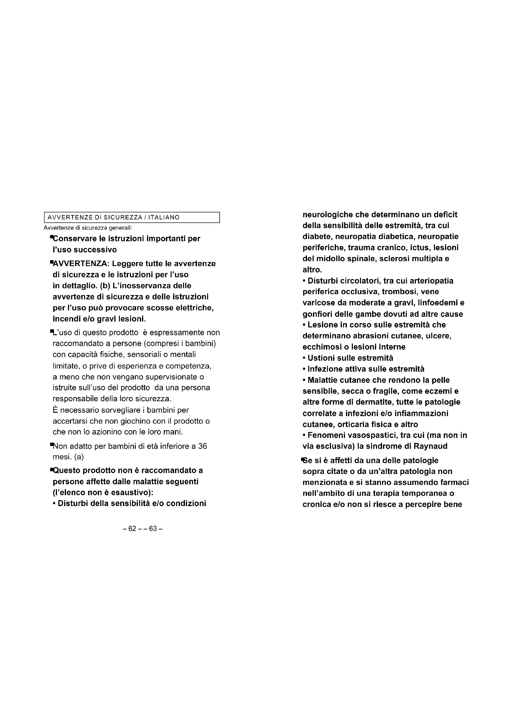 AVVERTENZE DI SICUREZZA / ITALIANO 62