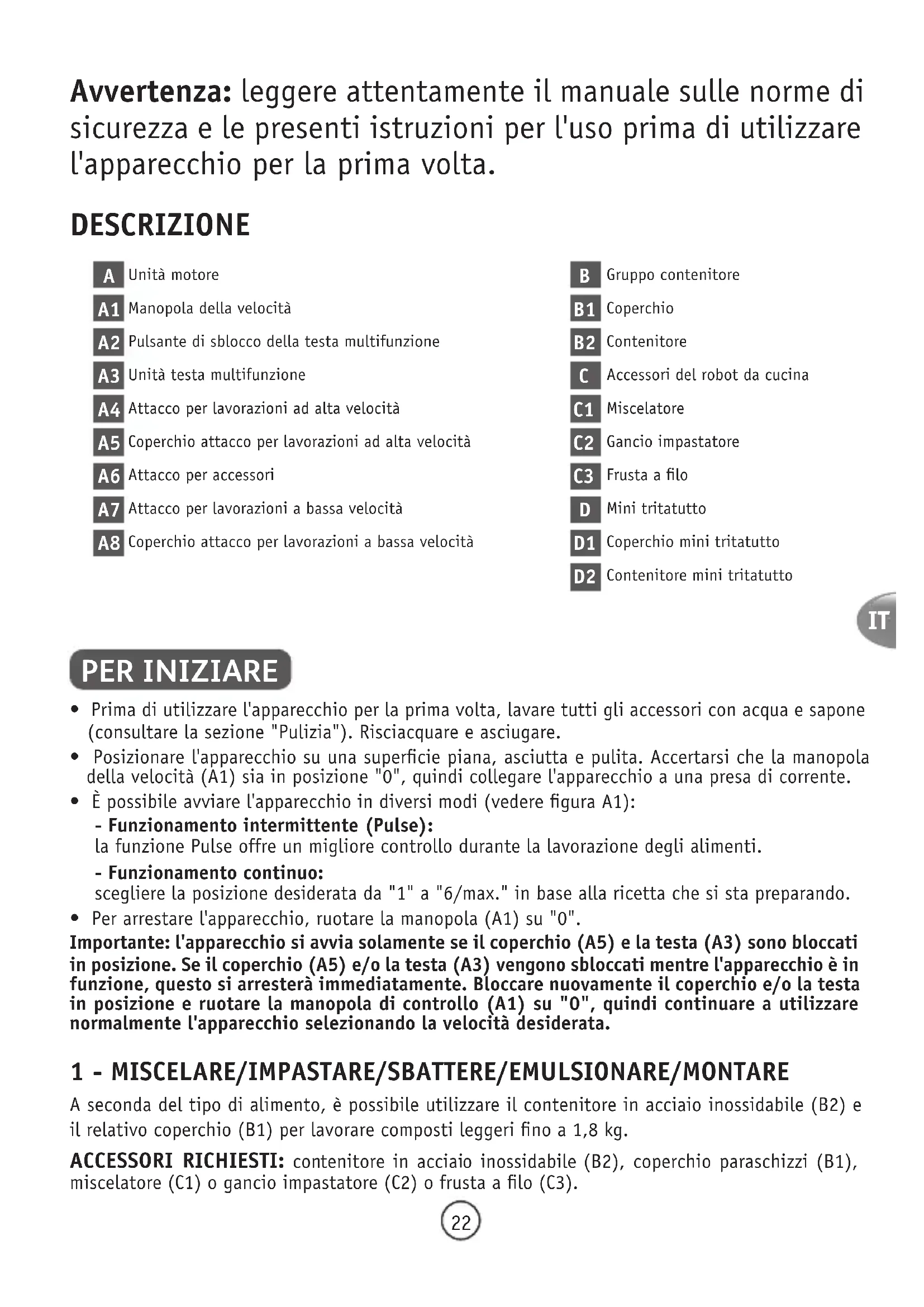 1 - MISCELARE/IMPASTARE/SBATTERE/EMULSIONARE/MONTARE