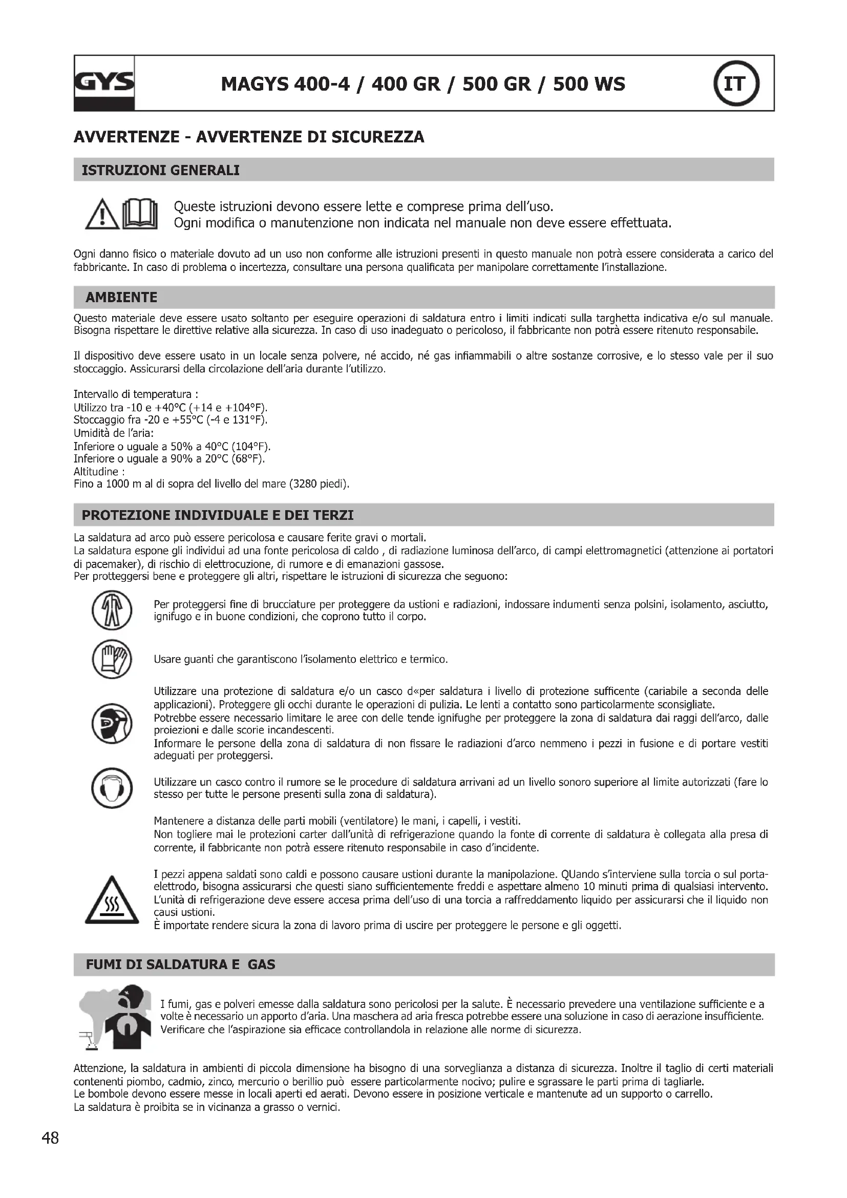 Magys 500 WS - Saldatrice GYS - Manuale utente e istruzioni gratuiti
