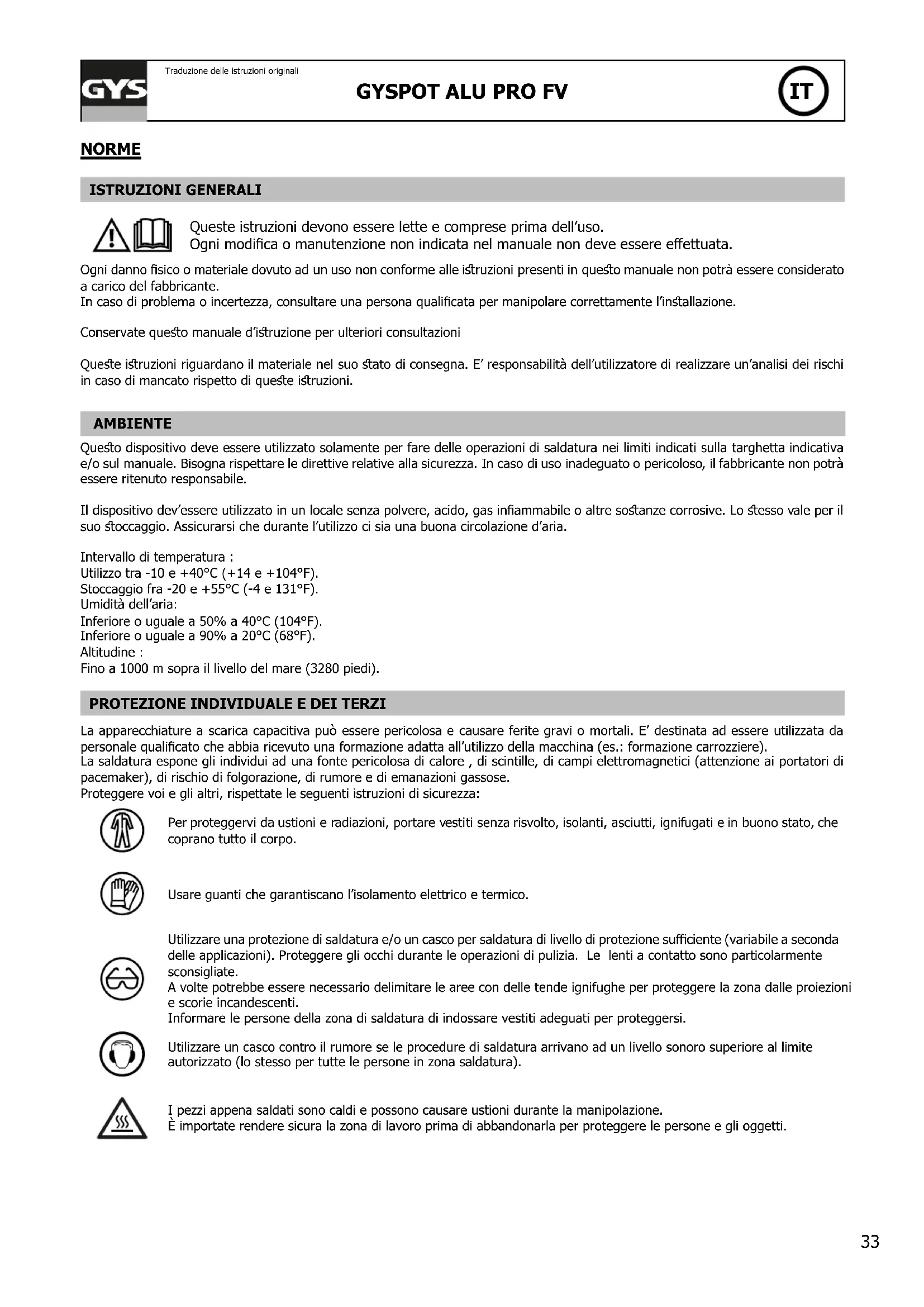 Scarica le istruzioni per il tuo Generatore in formato PDF gratuitamente! Trova il tuo manuale Gyspot ALU PRO FV - GYS e riprendi in mano il tuo dispositivo elettronico. In questa pagina sono pubblicati tutti i documenti necessari per l'utilizzo del tuo dispositivo. Gyspot ALU PRO FV del marchio GYS.
