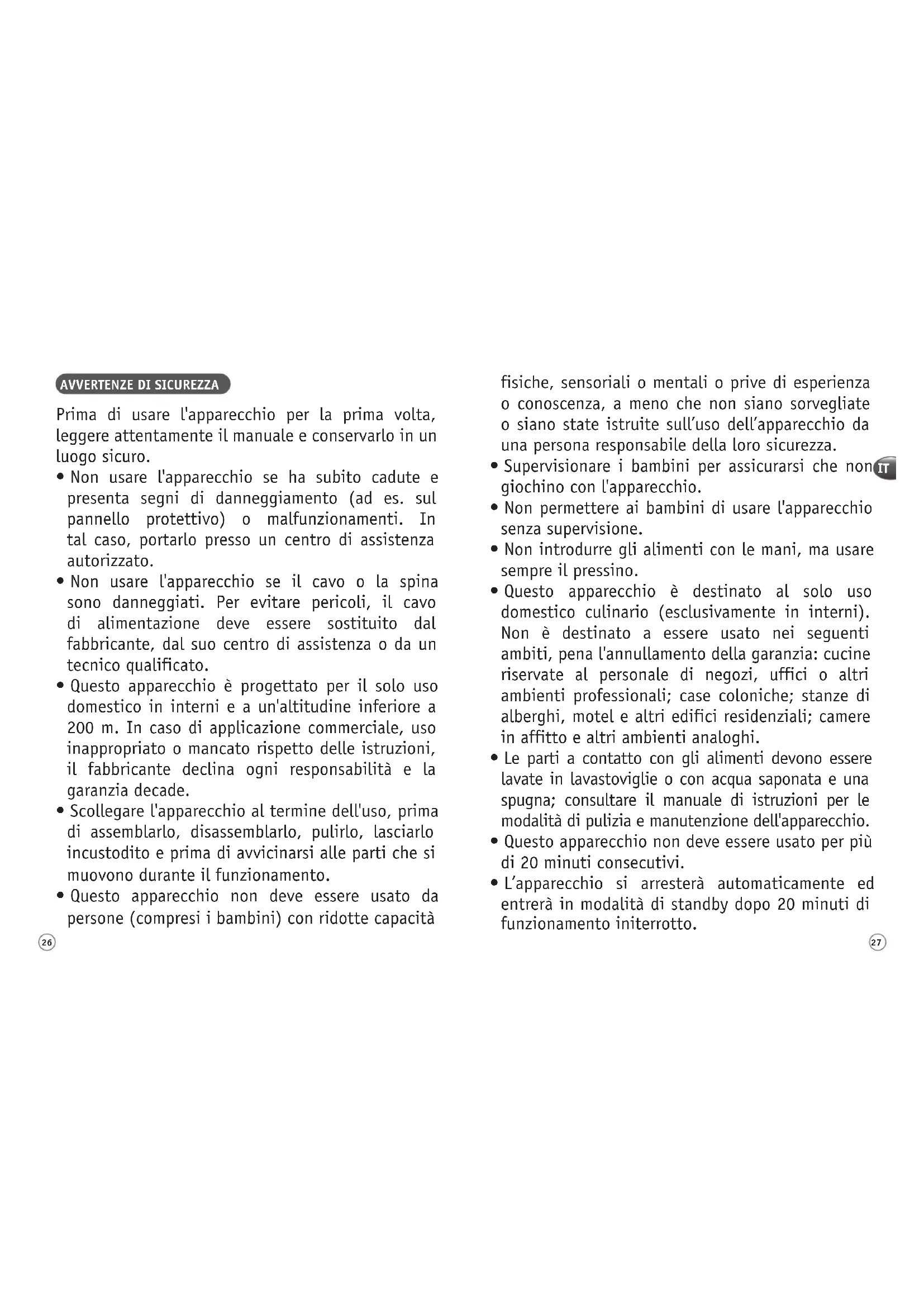 - Questo apparecchio può essere usato da persone con ridotte capacità fisiche, sensoriali o mentali o senza esperienza o conoscenza solo se supervisionate o istruite sull’uso sicuro dell’apparecchio e se comprendono i rischi correlati.