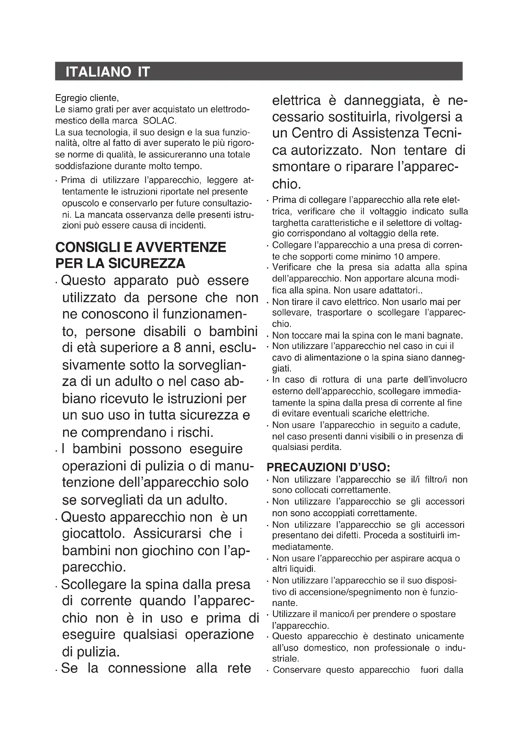 - Questo apparecchio è destinato unicamente all’uso domestico, non professionale o indu- striale.