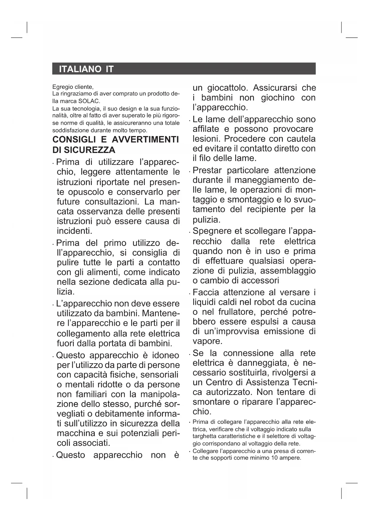MANUALE UTENTE Pro 800 Chef BA5603 SOLAC