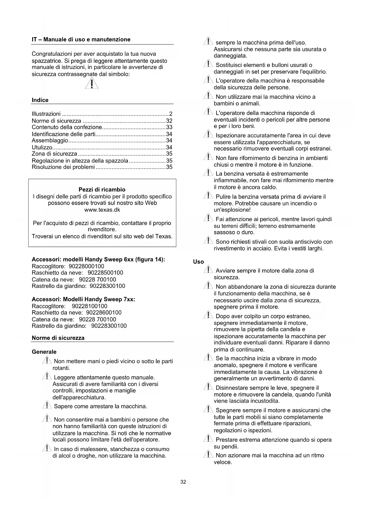 MANUALE UTENTE Handy Sweep 650TG Texas