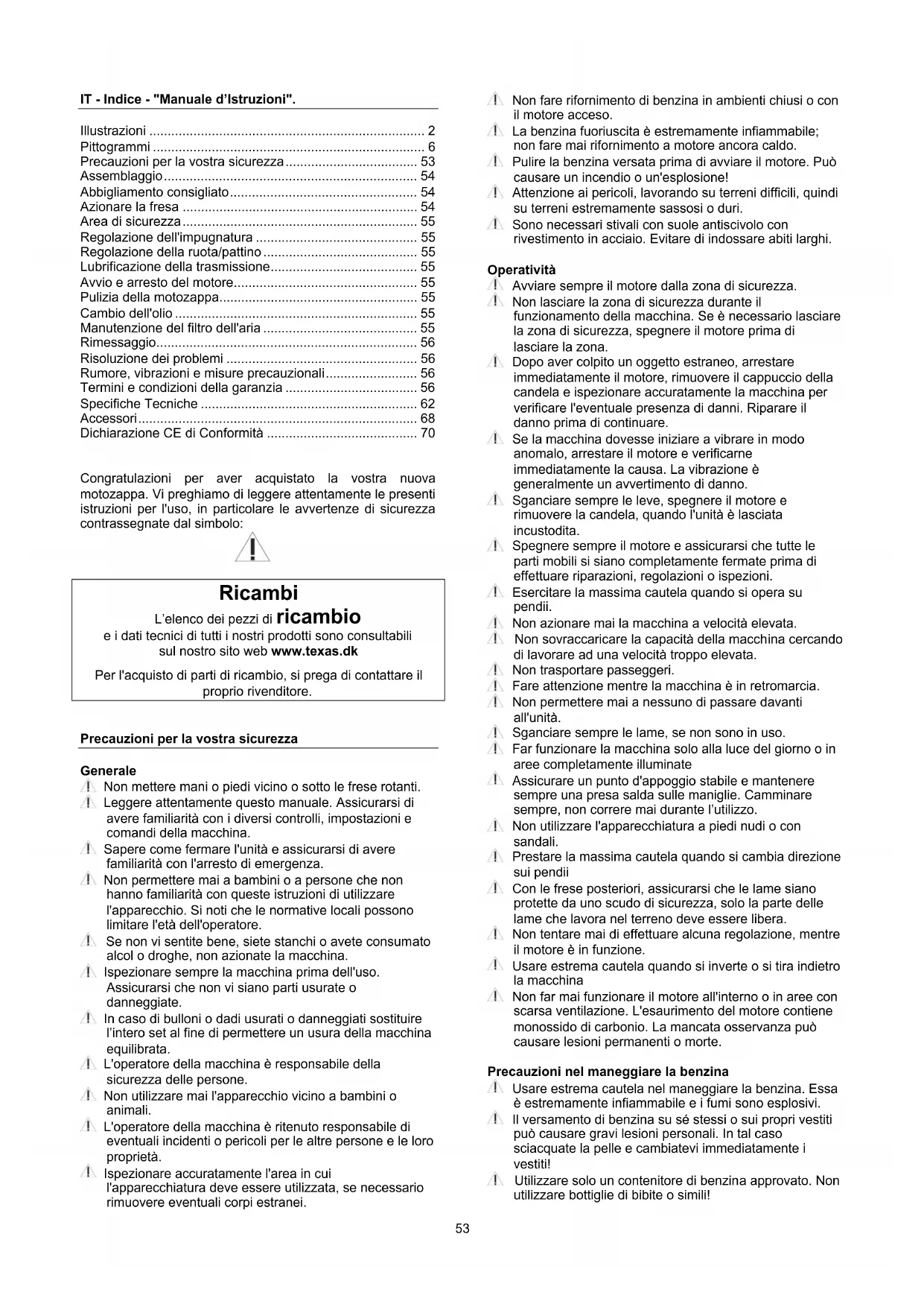 Lilli 534TG - Motocoltivatore Texas - Manuale utente e istruzioni gratuiti