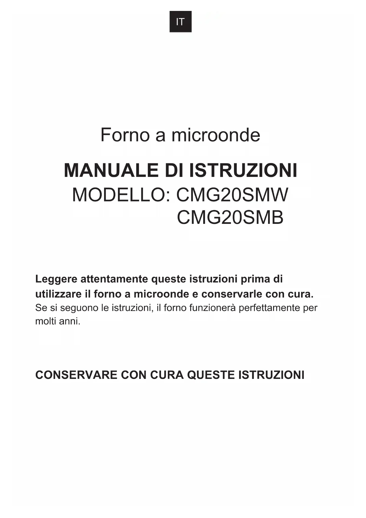 | Modello: CMG20SMW / CMG20SMB | |
