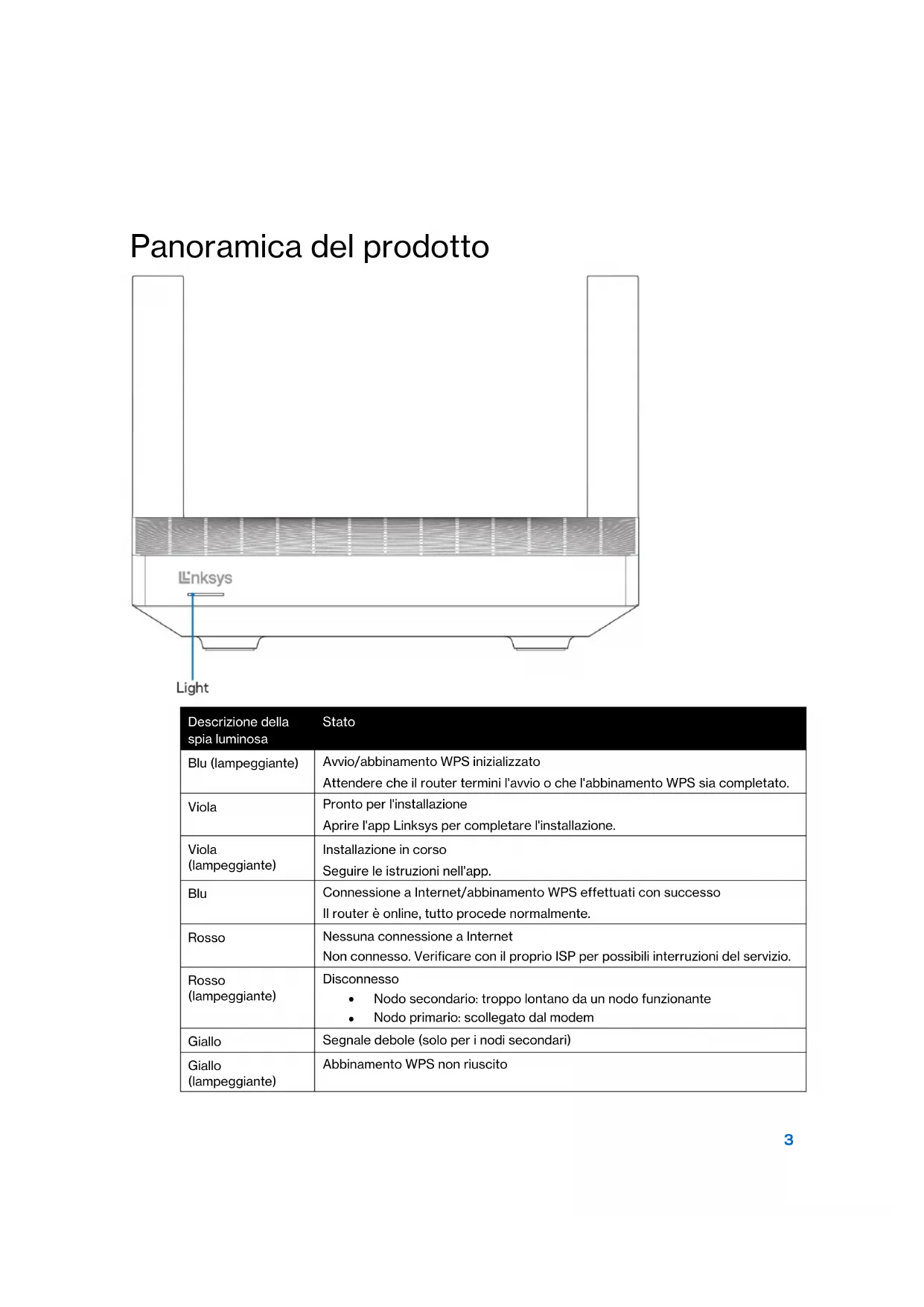 Nodo primario: scollegato dal modem Giallo Segnale debole (solo per i nodi secondari) Giallo (lampeggiante) Abbinamento WPS non riuscito4