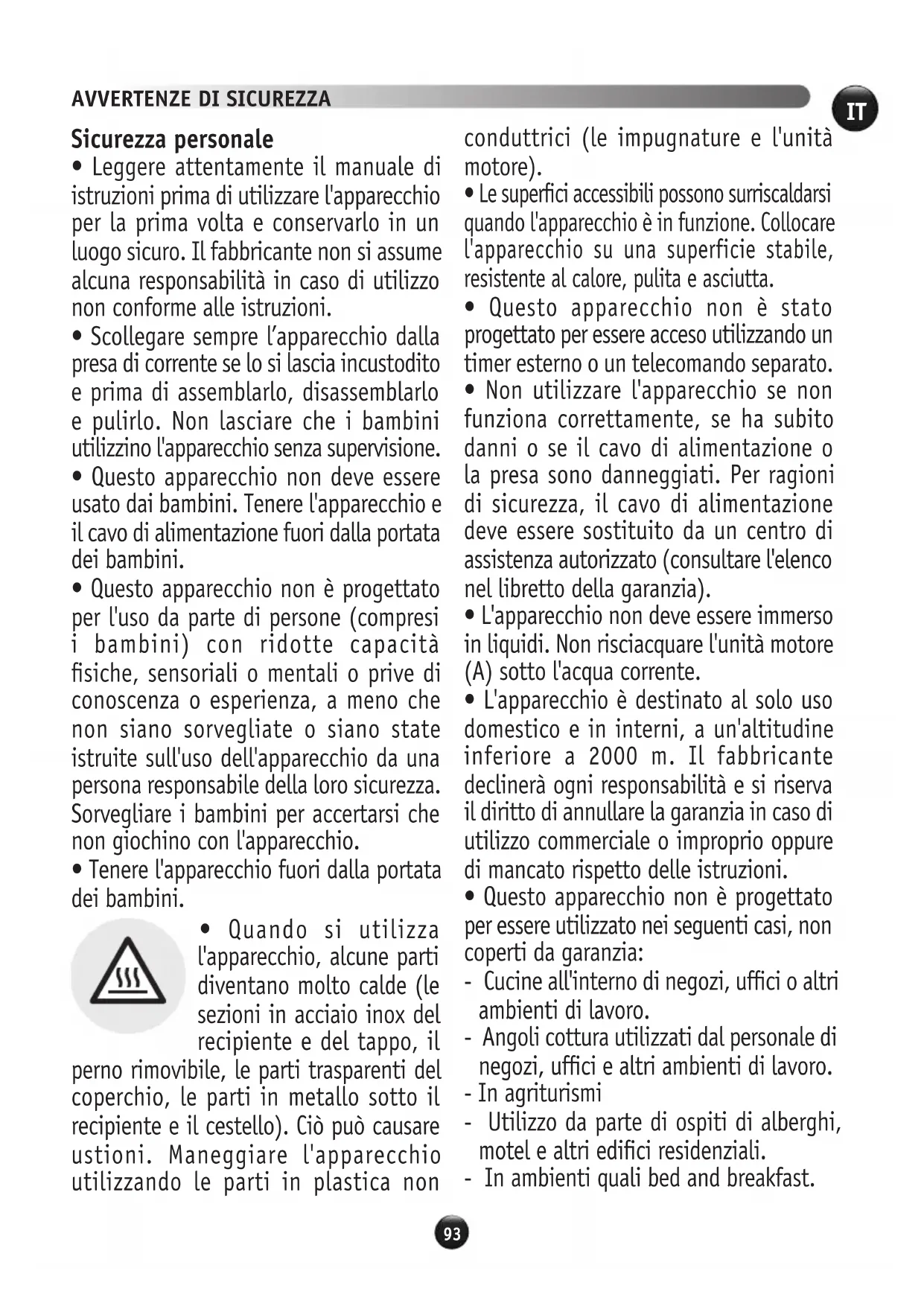AVVERTENZE DI SICUREZZA94 95