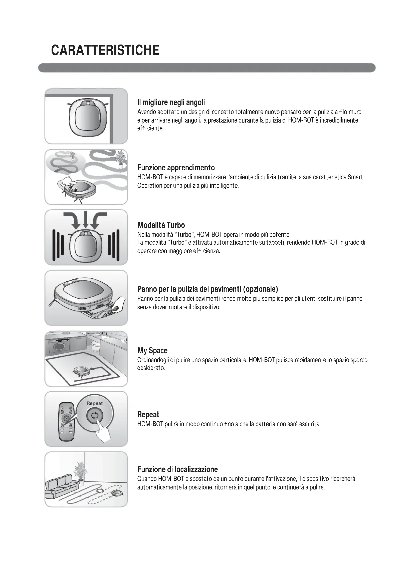 La modalità "Turbo" e attivata automaticamente su tappeti, rendendo HOM-BOT in grado di operare con maggiore effi cienza.