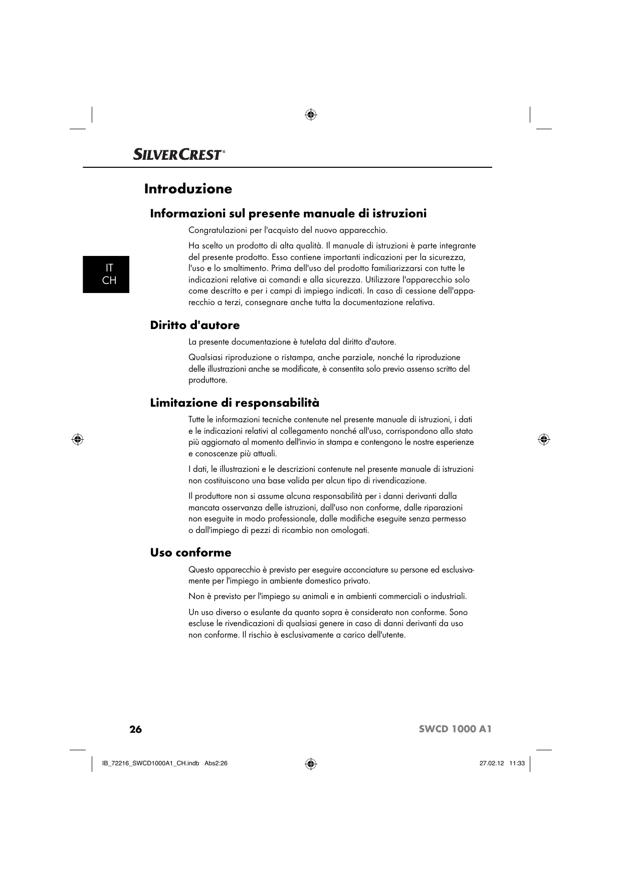 MANUALE UTENTE SWCD 1000 A1 SILVERCREST