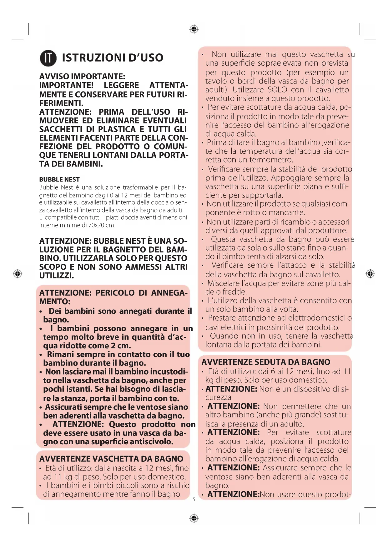 AVVERTENZE VASCHETTA DA BAGNO