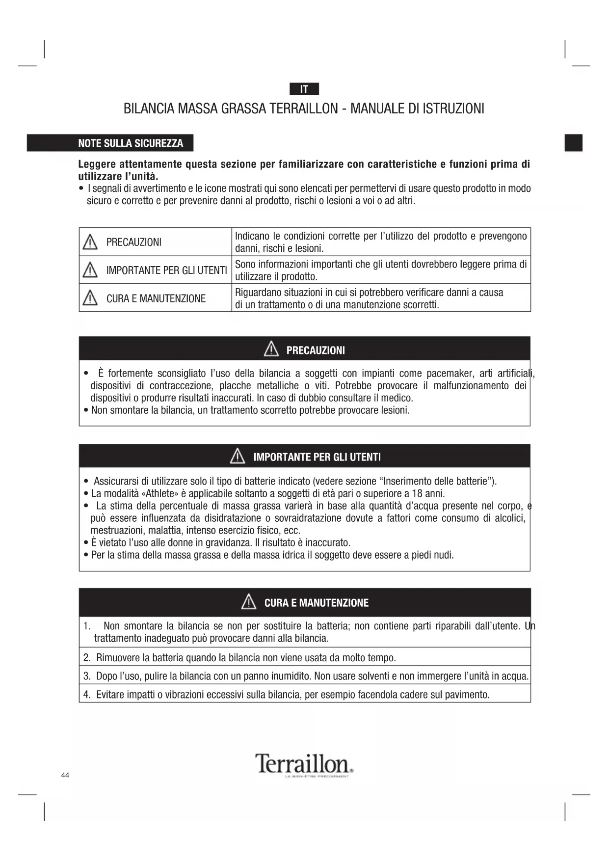 BILANCIA MASSA GRASSA TERRAILLON - MANUALE DI ISTRUZIONI