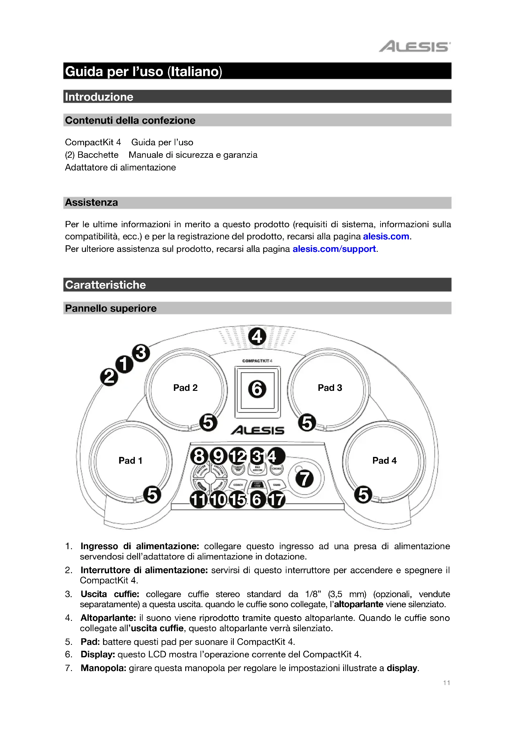 Scarica le istruzioni per il tuo Non categorizzato in formato PDF gratuitamente! Trova il tuo manuale CompactKit 4 - ALESIS e riprendi in mano il tuo dispositivo elettronico. In questa pagina sono pubblicati tutti i documenti necessari per l'utilizzo del tuo dispositivo. CompactKit 4 del marchio ALESIS.