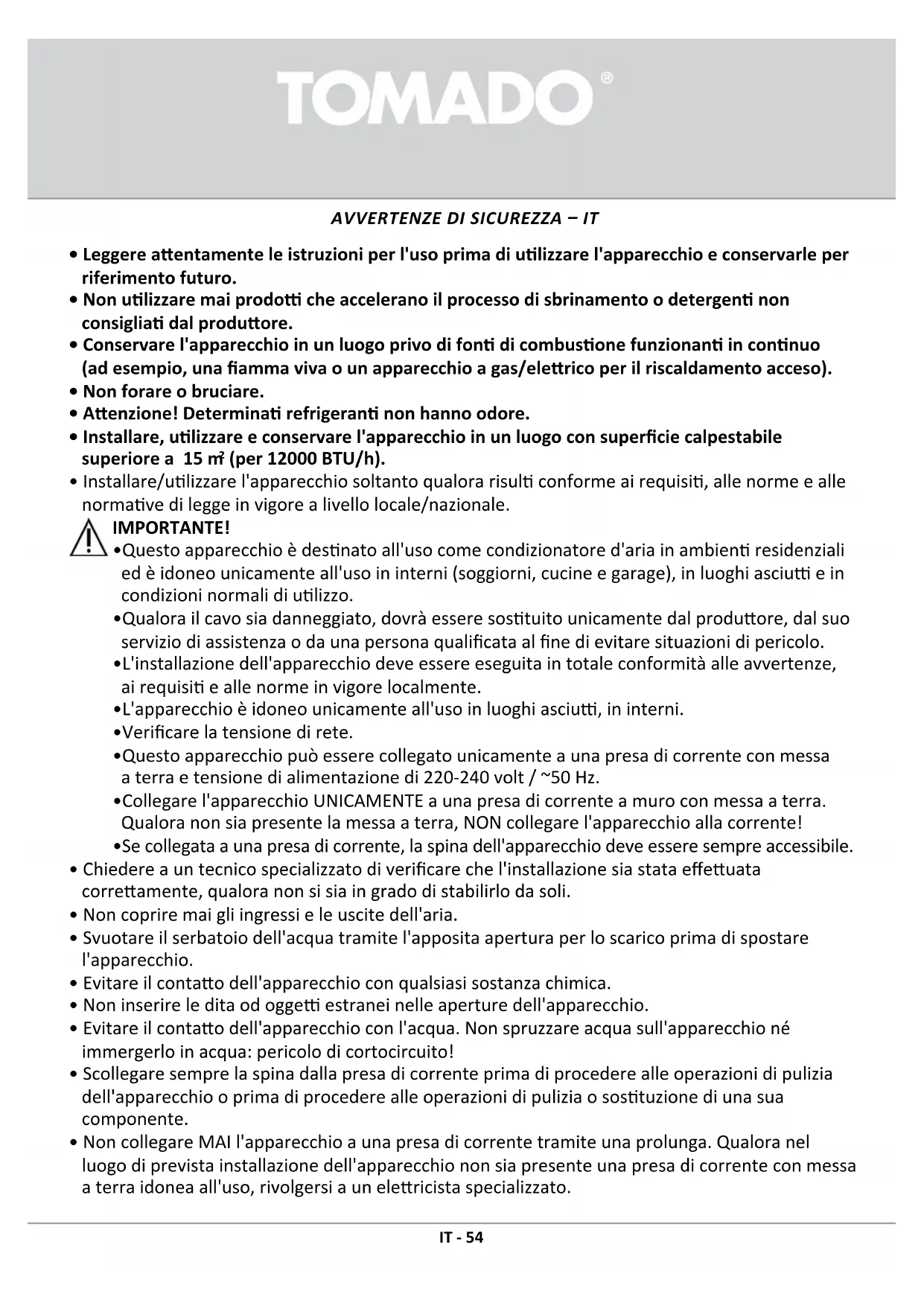 Scarica le istruzioni per il tuo Climatizzazione in formato PDF gratuitamente! Trova il tuo manuale TMA1201W - Tomado e riprendi in mano il tuo dispositivo elettronico. In questa pagina sono pubblicati tutti i documenti necessari per l'utilizzo del tuo dispositivo. TMA1201W del marchio Tomado.