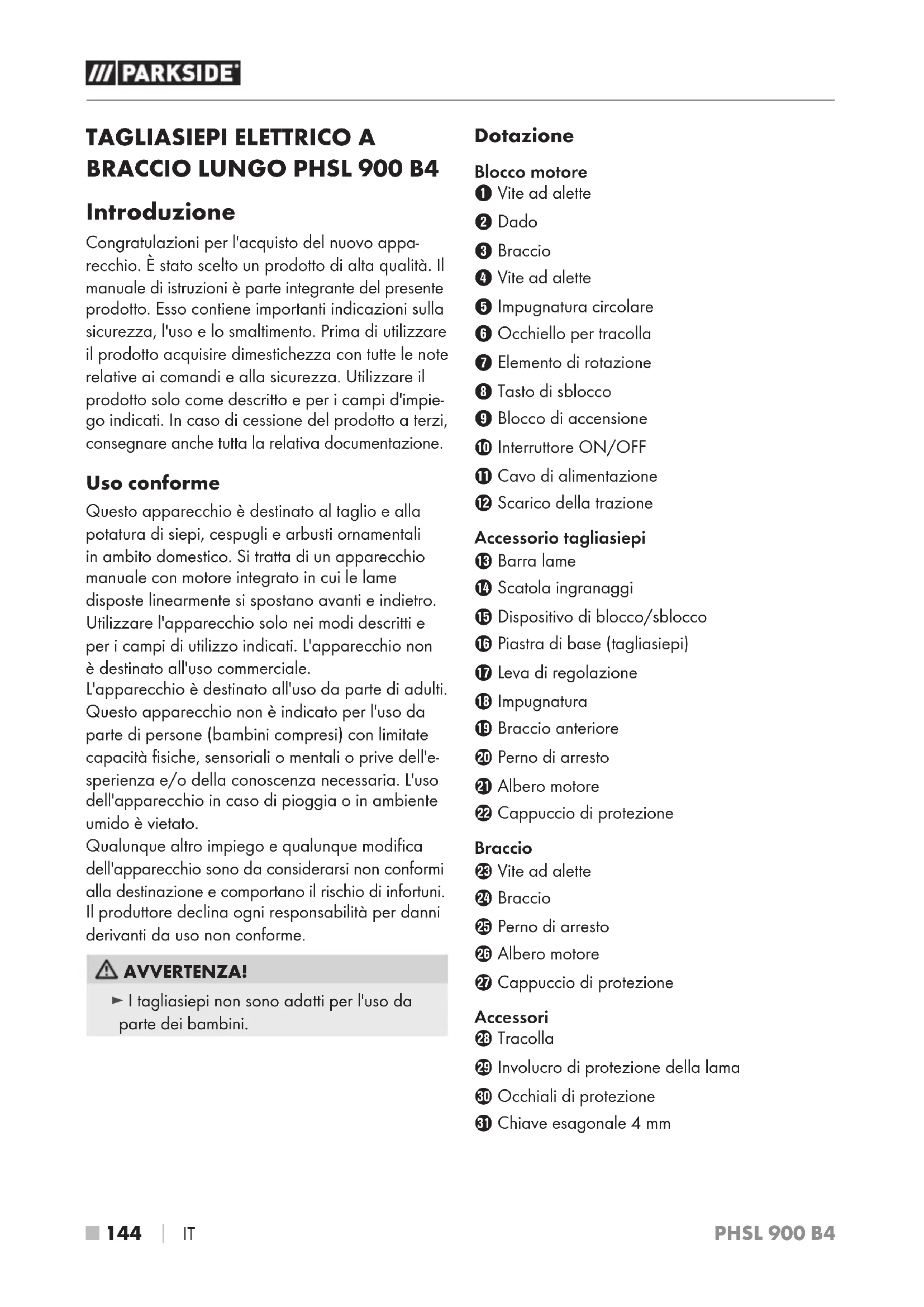 PHSL 900 B4 - Tagliasiepi PARKSIDE - Manuale utente e istruzioni gratuiti
