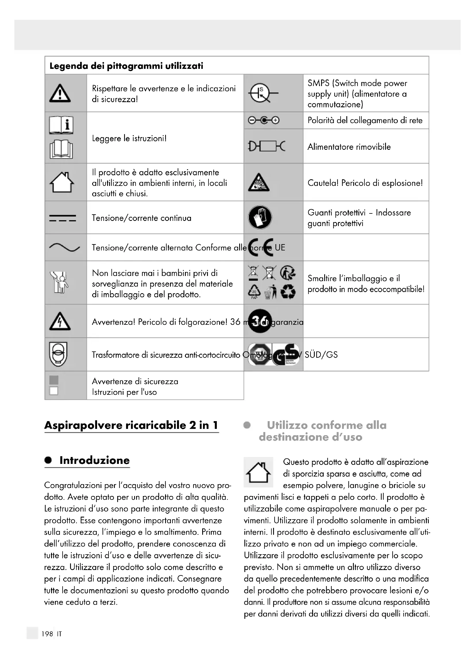| Avvertenze di sicurezza Istruzioni per l'uso | |||