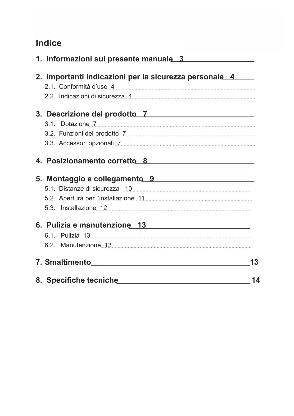6.1. Pulizia 13 6.2. Manutenzione 13