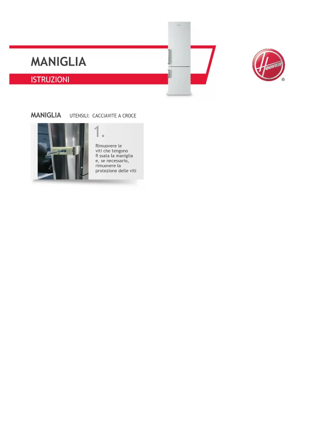 MANIGLIAISTRUZIONI Aprire lo sportello Rimuovere la guarnizione dalla sua sede tirando dall’angolo