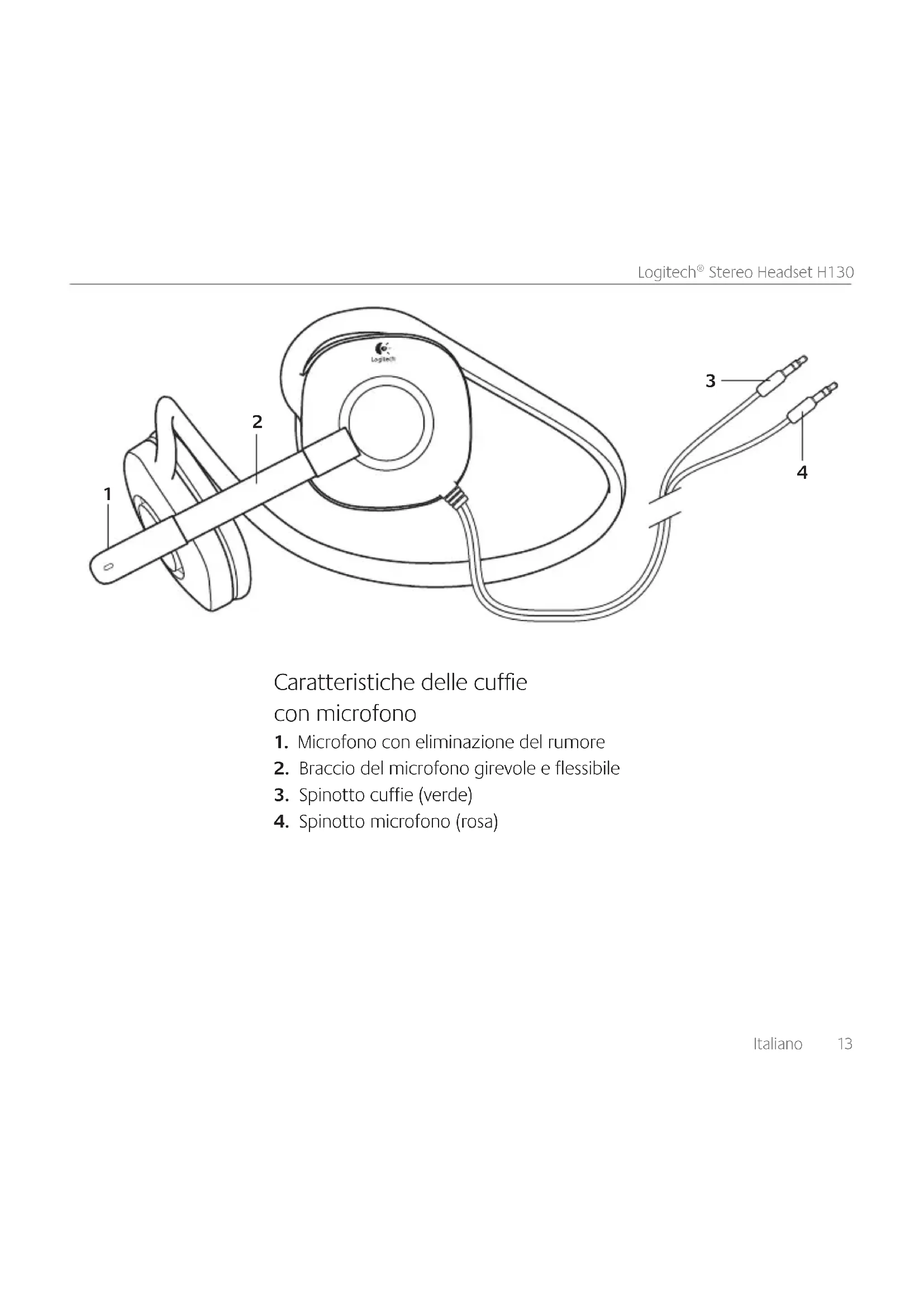 Collegamento delle cuffie con microfonoItaliano 15 Logitech® Stereo Headset H130