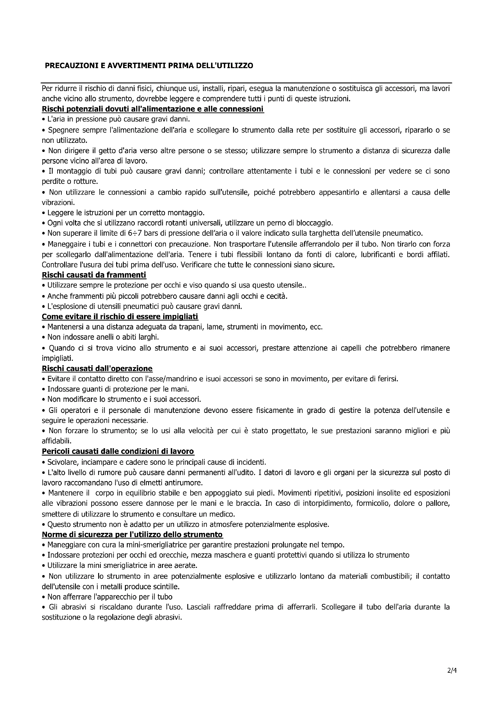 - Maneggiare con cura la mini-smerigliatrice per garantire prestazioni prolungate nel tempo.